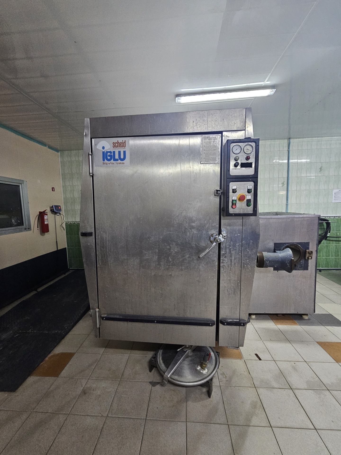 Продается Массажер для мяса с холодильной установкой Scheid 1300 MC(Германия) 1991 года выпуска. Объем емкости 1300литров. Полностью в хорошем рабочем состоянии, как сам массажер, так и холодильная установка. Можно устанавливать в любом помещении, так так охлаждение происходит внутри самой камеры, в которой стоит массажер. Заменена вся автоматика, отсос воздуха переделан не через вал, а через крышку для более надежной герметичности.