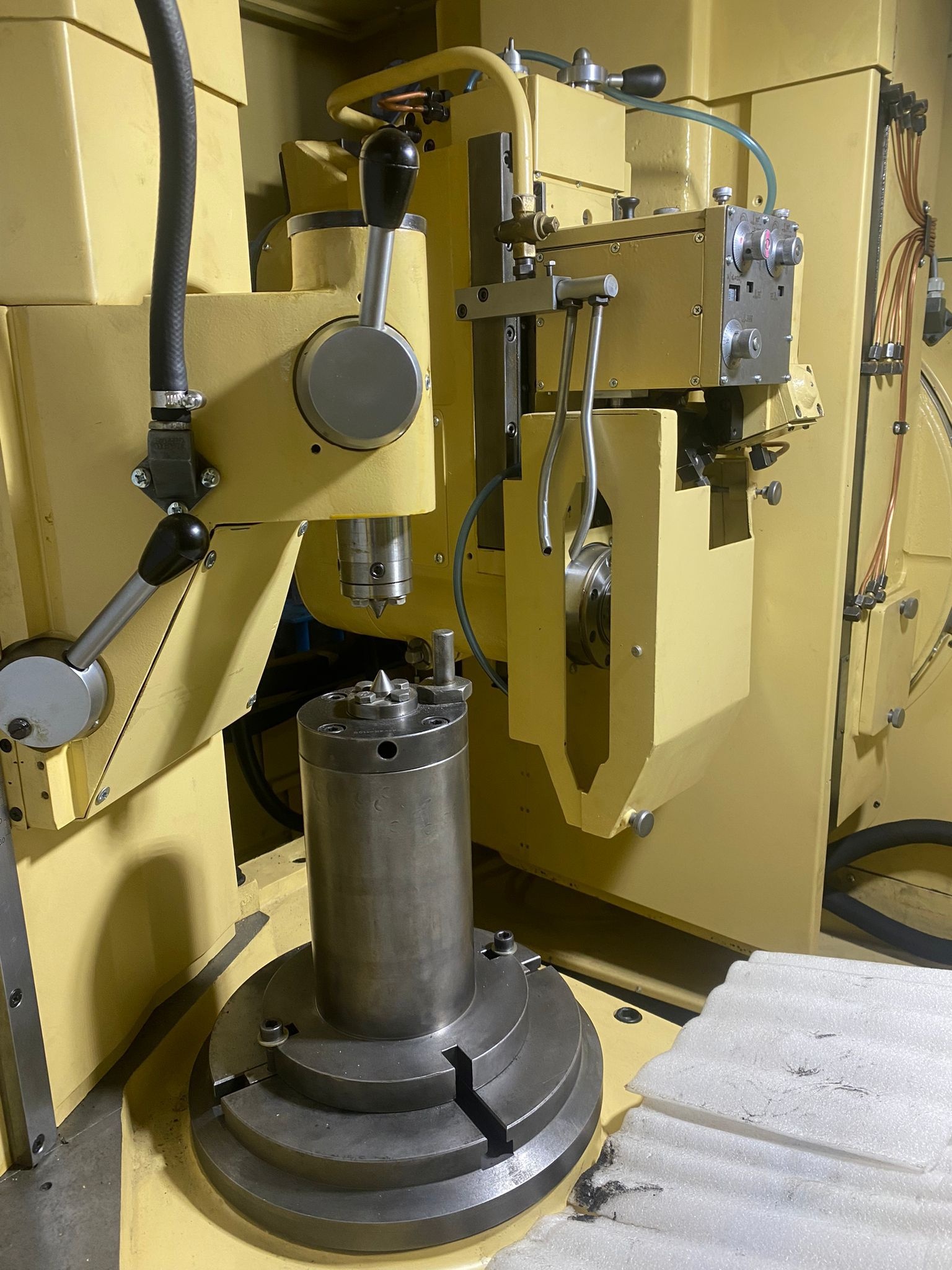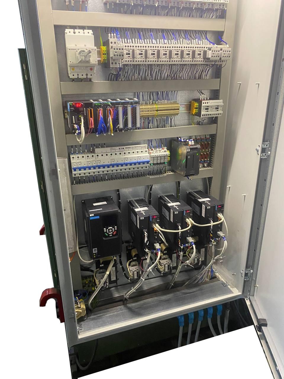 Новый зубошлифовальный станок модели 5А841Ф11 с контроллером и приводами “INOVANCE”, с развязанной кинематикой на ШВП, с пропорциональной гидравликой на правку круга фирм Hydropack и DUPLOMATIC. Правка круга управляется контроллером.