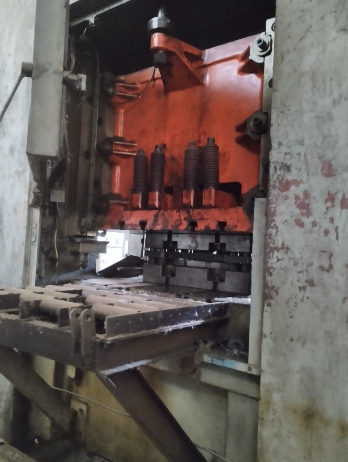 А2 -200 Schuler (Шулер) - пресс-автомат, номинальное усилие - 200 тонн, расстояние между стойками - 1450 мм, размеры крепежной доски (ШхД) - 1350х1100 мм, размеры рабочей площади ползуна - 1250х900 мм, ход ползуна нормальный - 30 мм, расстояние между крепежной доской и ползуном (нижнее положение ползуна, регулировка ползуна в крайнем верхнем положении) - 400 мм, регулировка ползуна - 100 мм, толщина крепежной доски - 180 мм, провальное окно в крепежной доске (ШхД) - 1160х360 мм, провальное окно в столе (ШхД) - 1225х360 мм, количество траверс в ползуне - 4 шт., ход выталкивателя - 4 мм, общая сила выталкивателя - 20 тонн, количество нажимных пальцев на траверсе - 5 шт., высота подвода ленточного материала над крепежной доской (регулируемая) - 150...200 мм, продольные шлицы в ползуне - 50х8 мм, число ходов (регулируемое) - 100...350 мм.
