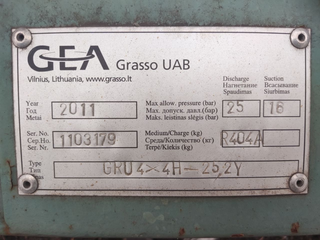 Агрегат: GEA Grasso GRU 4x4H-25.2Y (2011 г.в.).