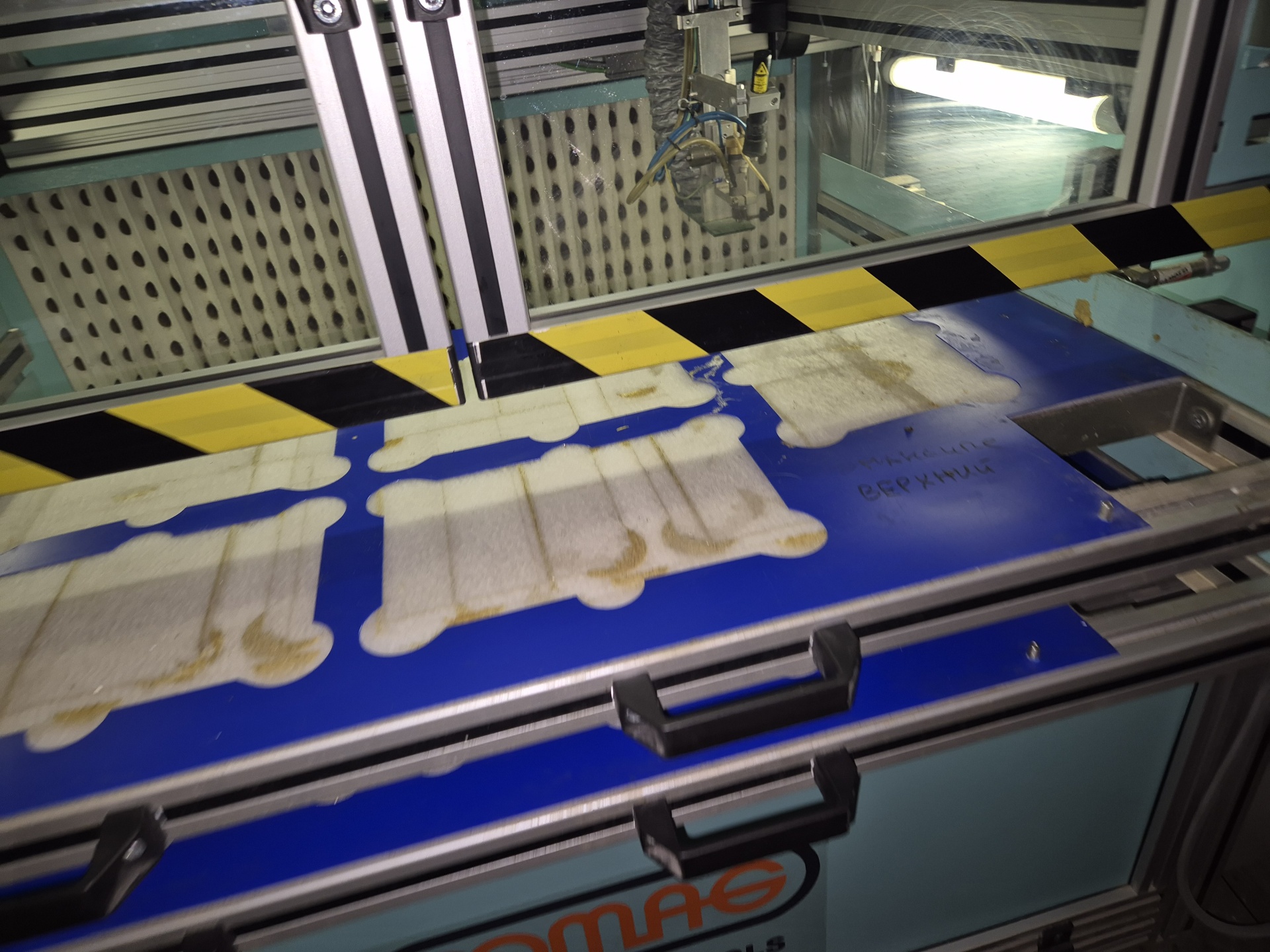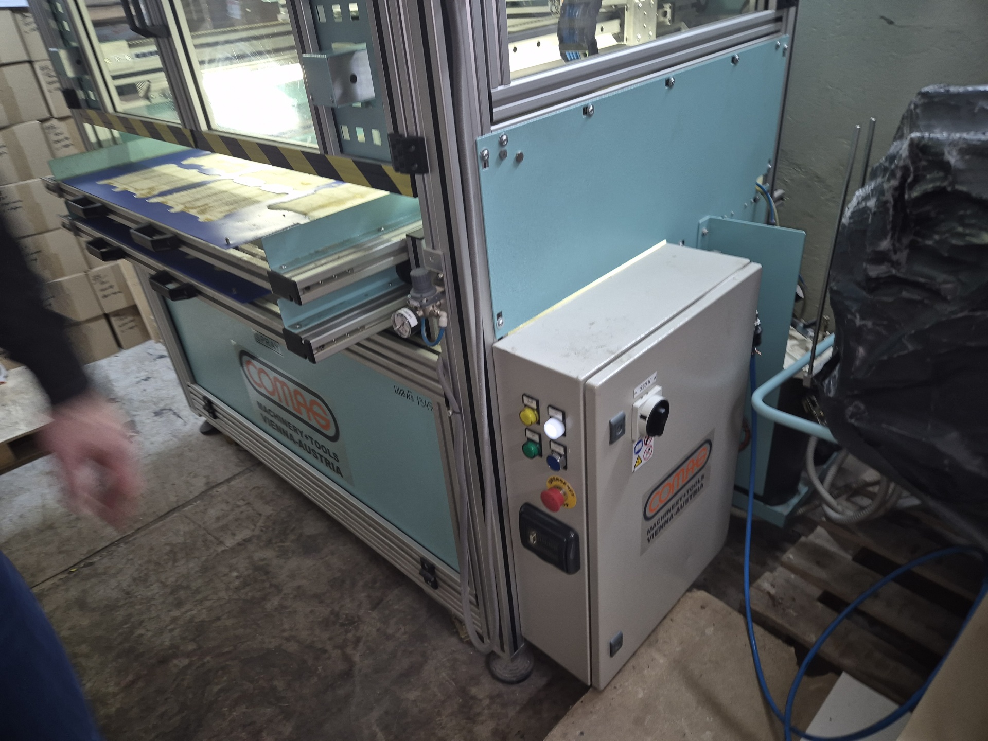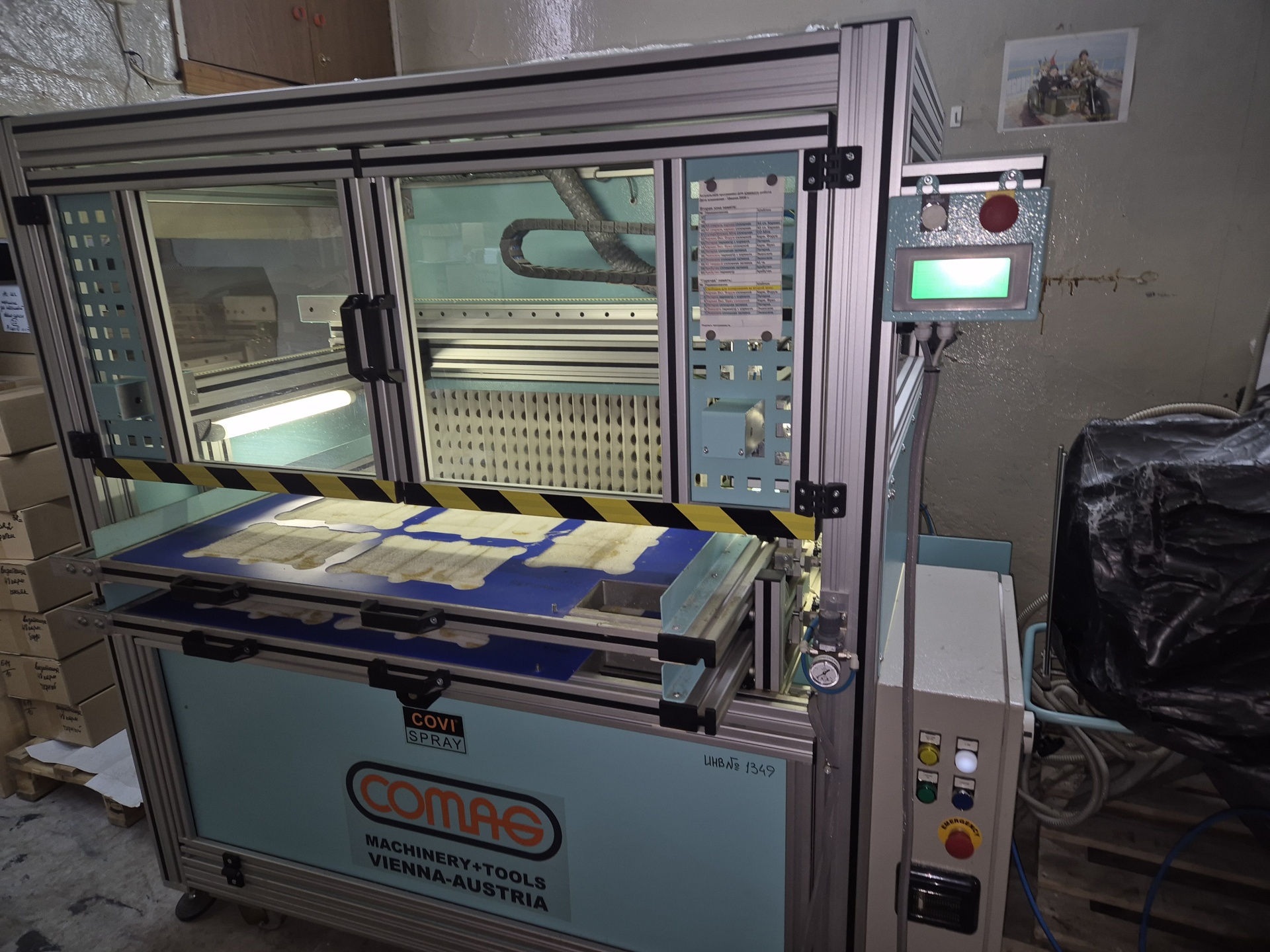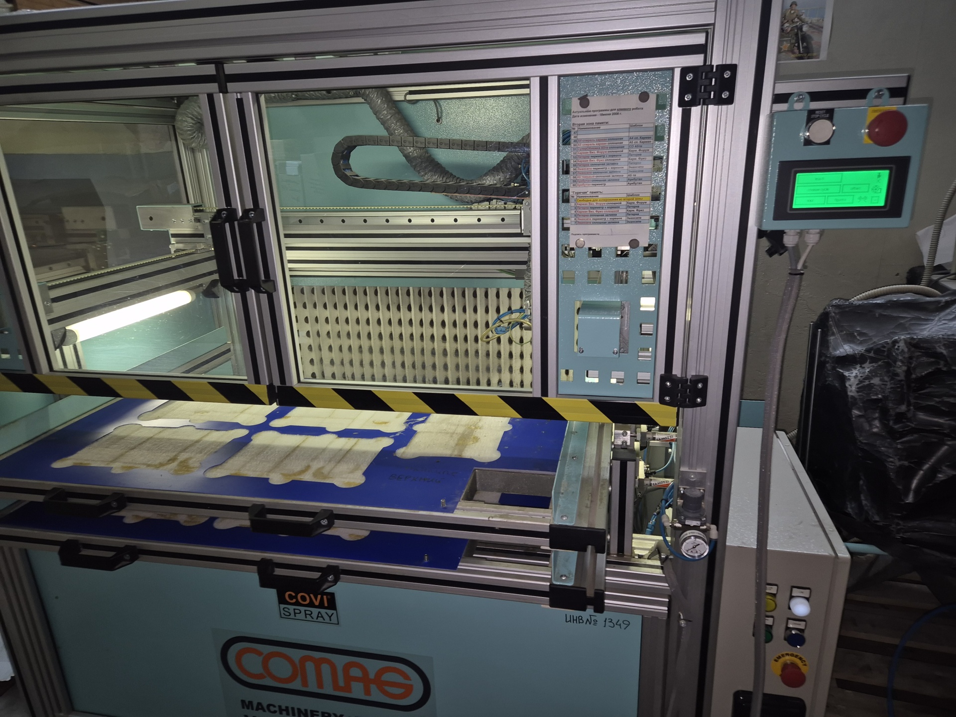Робот клеемазка Comag Модель CCN2-1,пр-во Австрия, Формат рабочей зоны 800/400 мм, наносит клей на заготовку из кожи и кожзама и др материала - по заданной программе. Двухосевая программируемая склеивающая машина. Программирование осушествляется с помошью консолис сенсорным экраном. Клей применяется на основе водных растворов.
