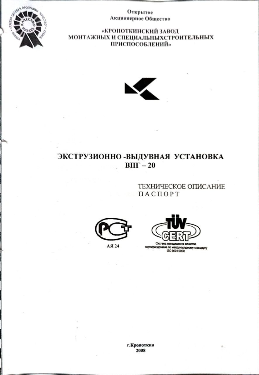 Экструзионно-выдувная установка ВПГ-20 Б/У - Продам в Реутове