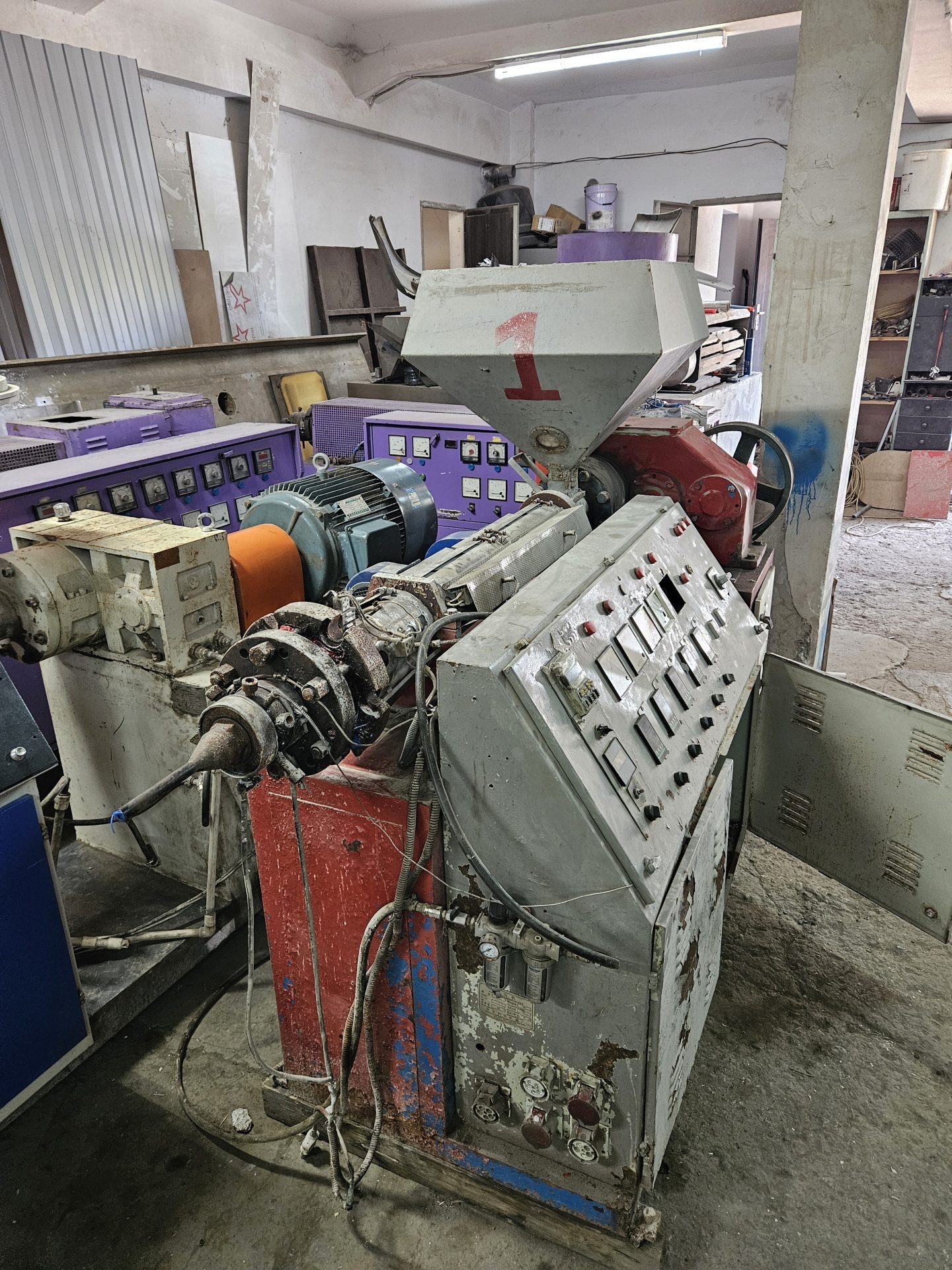 Продаются две линии гофрированной трубы от 16-до 50мм. Цена указана за 45-й экструдер+гофратор с одним установленным размером и фильерой +50т.р за каждый дополнительный размер траков. К одному столу подходит 3шт. комплектов- в итоге- 500т.р. ; ко второму 5шт. компл. - в итоге - 600т.р. По технической части в хорошем состоянии, по электрике надо привести в порядок.