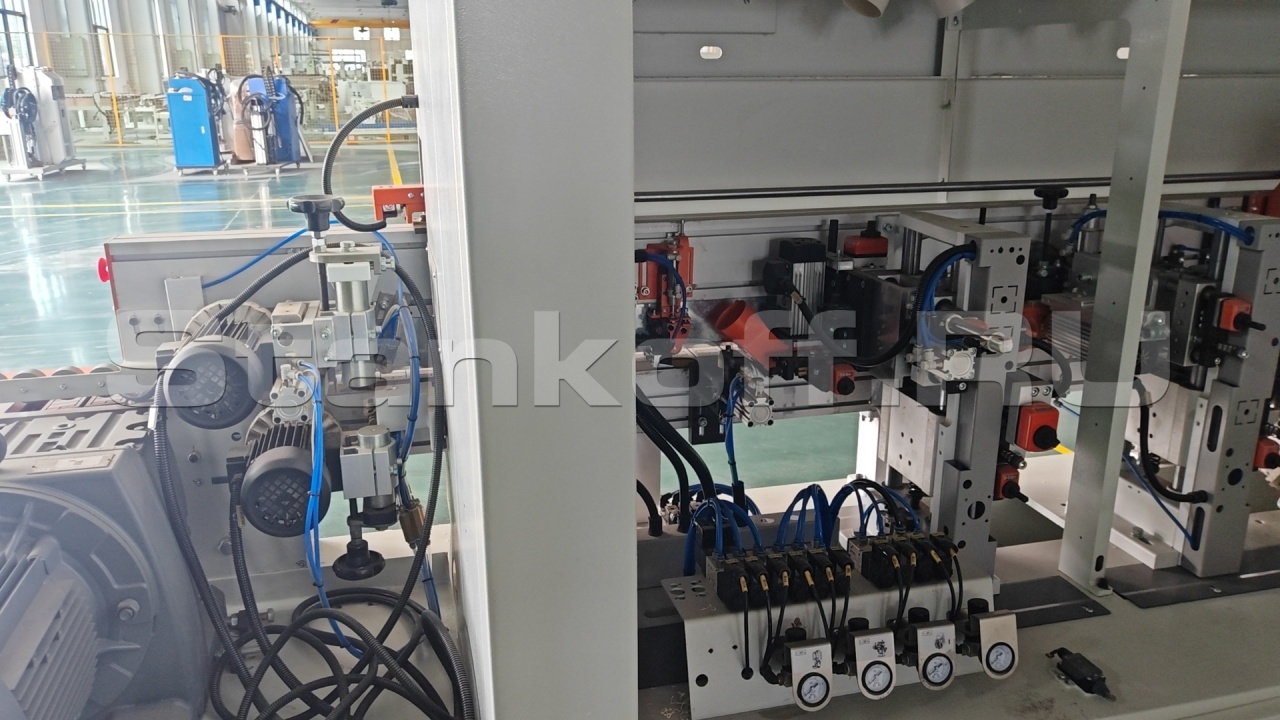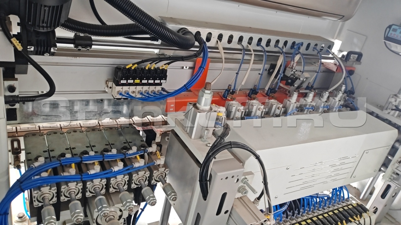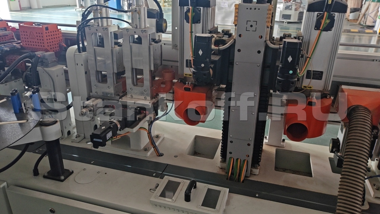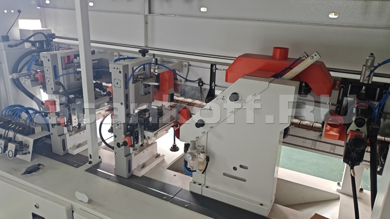 Используются два высокочастотных двигателя мощностью по 2,2 кВт, обеспечивающих чистовое фрезерование. Это позволяет эффективно устранить сколы, снизить выраженность клеевого шва и добиться более аккуратного и эстетичного качества кромкооблицовки.