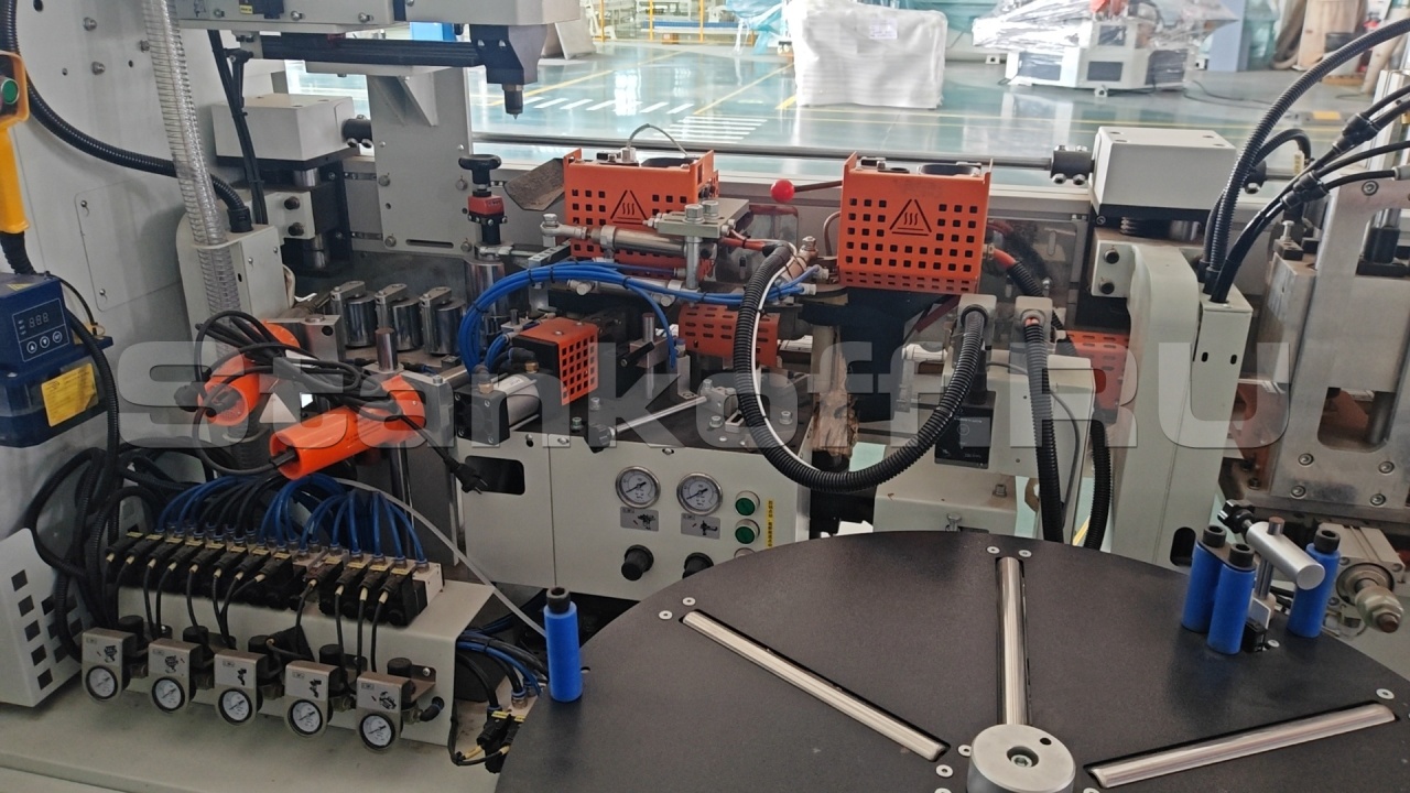 Пользовательский интерфейс автоматического кромкооблицовочного станка выполнен на базе промышленной сенсорной панели 21,5″ с ёмкостным экраном, памятью 4 ГБ и накопителем 64 ГБ под управлением Windows 10. Система поддерживает сетевое подключение и открытые интерфейсы данных, а управление функциями и PLC реализовано в режиме «одной кнопки» для простоты и удобства эксплуатации.