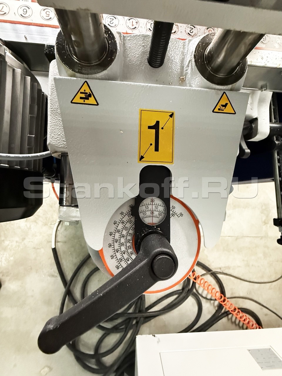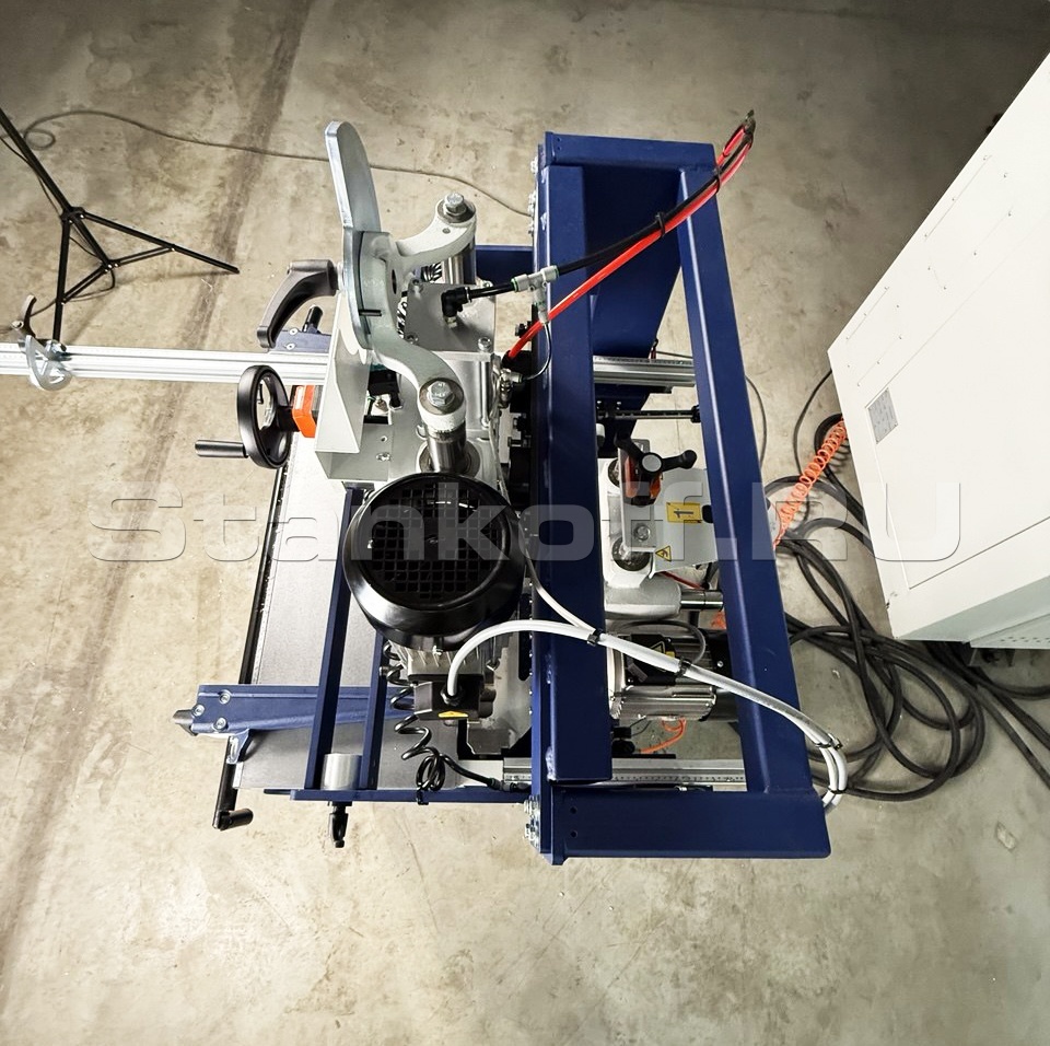 Поворотная сверлильная группа, может производить сверления под разными углами от 0 до 90.Установка необходимого градуса для сверления, выполняется по механической шкале с помощью.