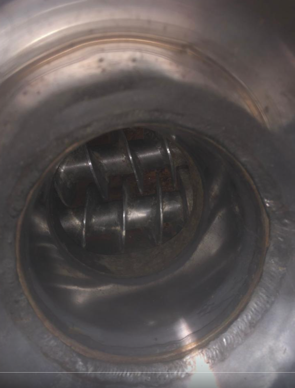 (двух-шнековый, прямой набивки) предназначен для непрерывного наполнения в вакуумной среде колбасных оболочек фаршем при производстве вареных и полукопченых колбас, сарделек, сосисок. Двух-шнековые вытеснители лишены недостатков одношнековых вытеснителей, сводит на нет возможное перетирание фарша, перераспределение компонентов по объёму фарша, пульсацию фарша на выходе из вытеснителя.