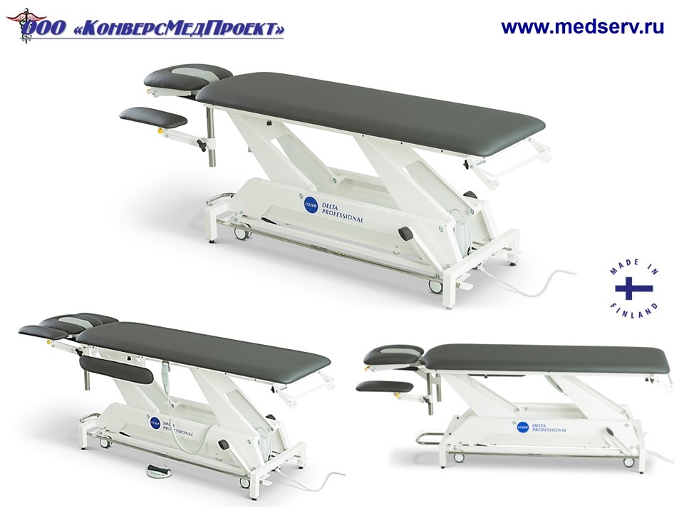 ООО «КонверсМедПроект» на правах официального дистрибьютора представляет классический надежный массажный стол Delta Professional DP4(https://www.medserv.ru/catalog/massazhnye-stoly/123267.html ) производства Lojer, Финляндия.