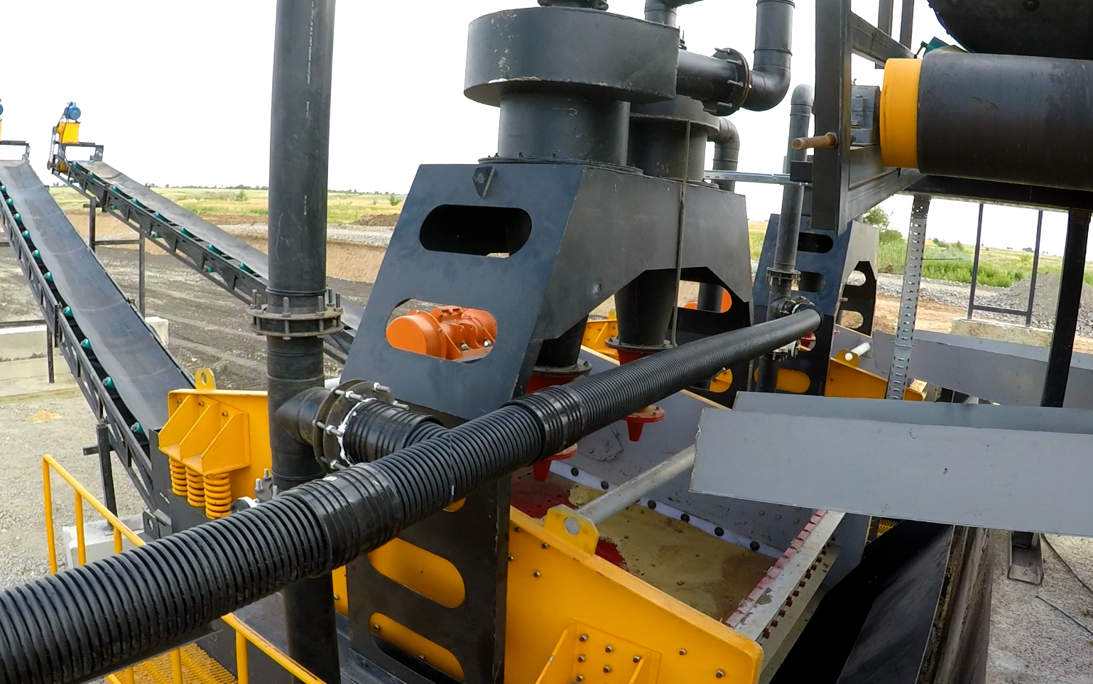 Обезвоживающий грохот с гидроциклоном - современное оборудование, объединяющее процессы промывки и обезвоживания в одном компактном решении. С его помощью вы получаете чистый, однородный и качественный песок без лишней влаги.