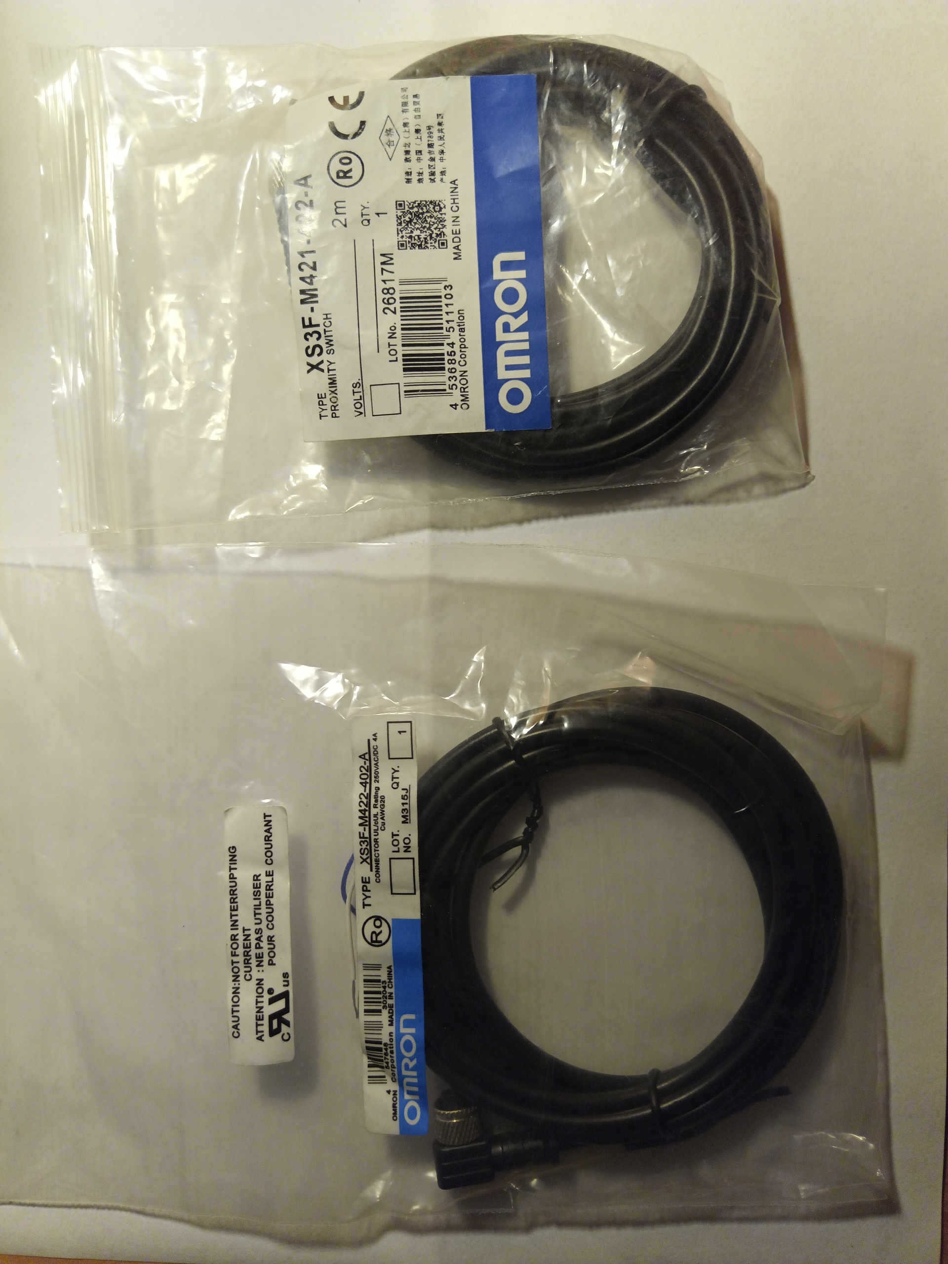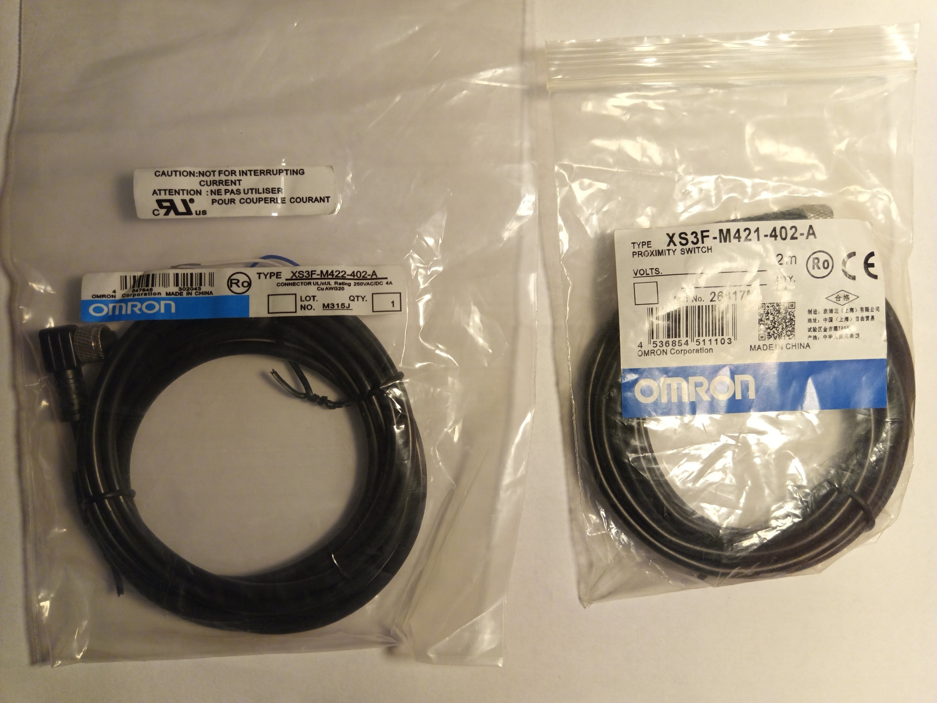 Кабель с разъемом М8 4 pin прямой XS3F-M421-402-A и Кабель с разъемом М8 4 pin угловой XS3F-M422-402-A.