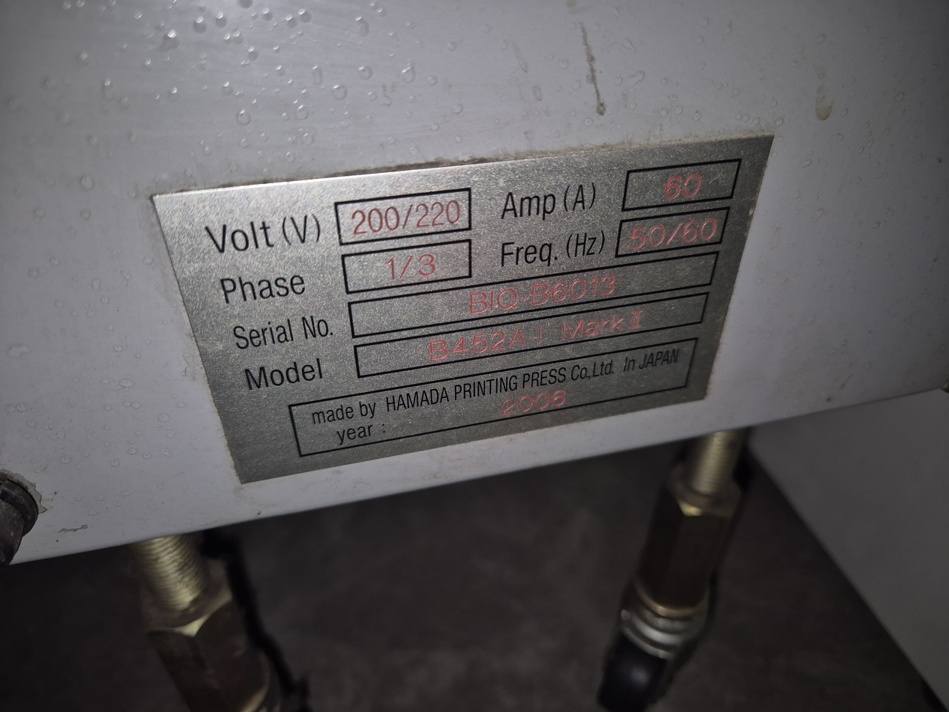 Офсетная печатная машина Hamada B452A, 2006 г.в., 4 краски, спирт, комплектна. Не работала 4 года. Формат бумаги, мм: макс-520x365,мин-257х182. Продается как есть.