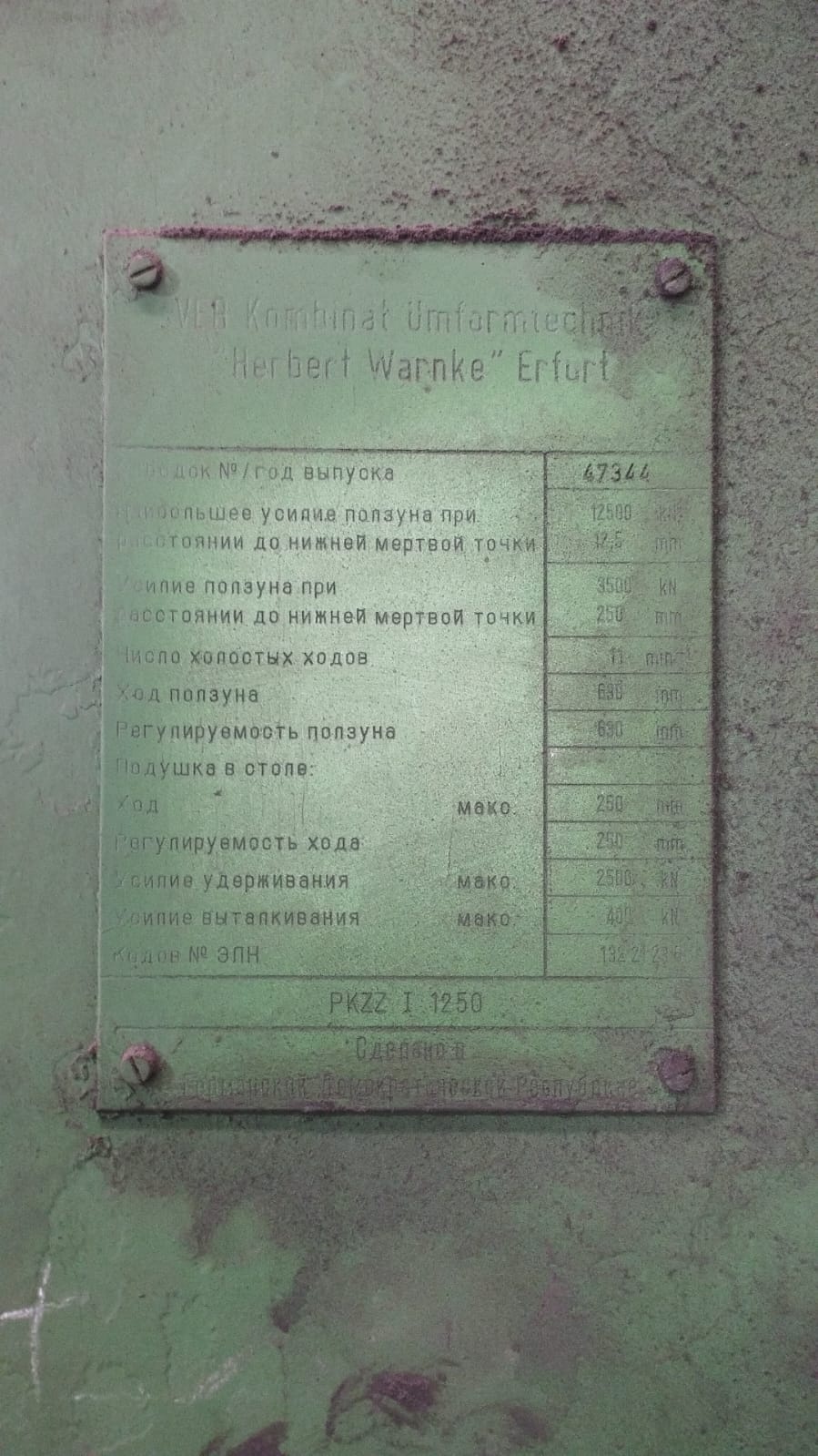 Предприятие реализует кривошипный пресс Эрфурт - Erfurt PKZZ 1250-4000.