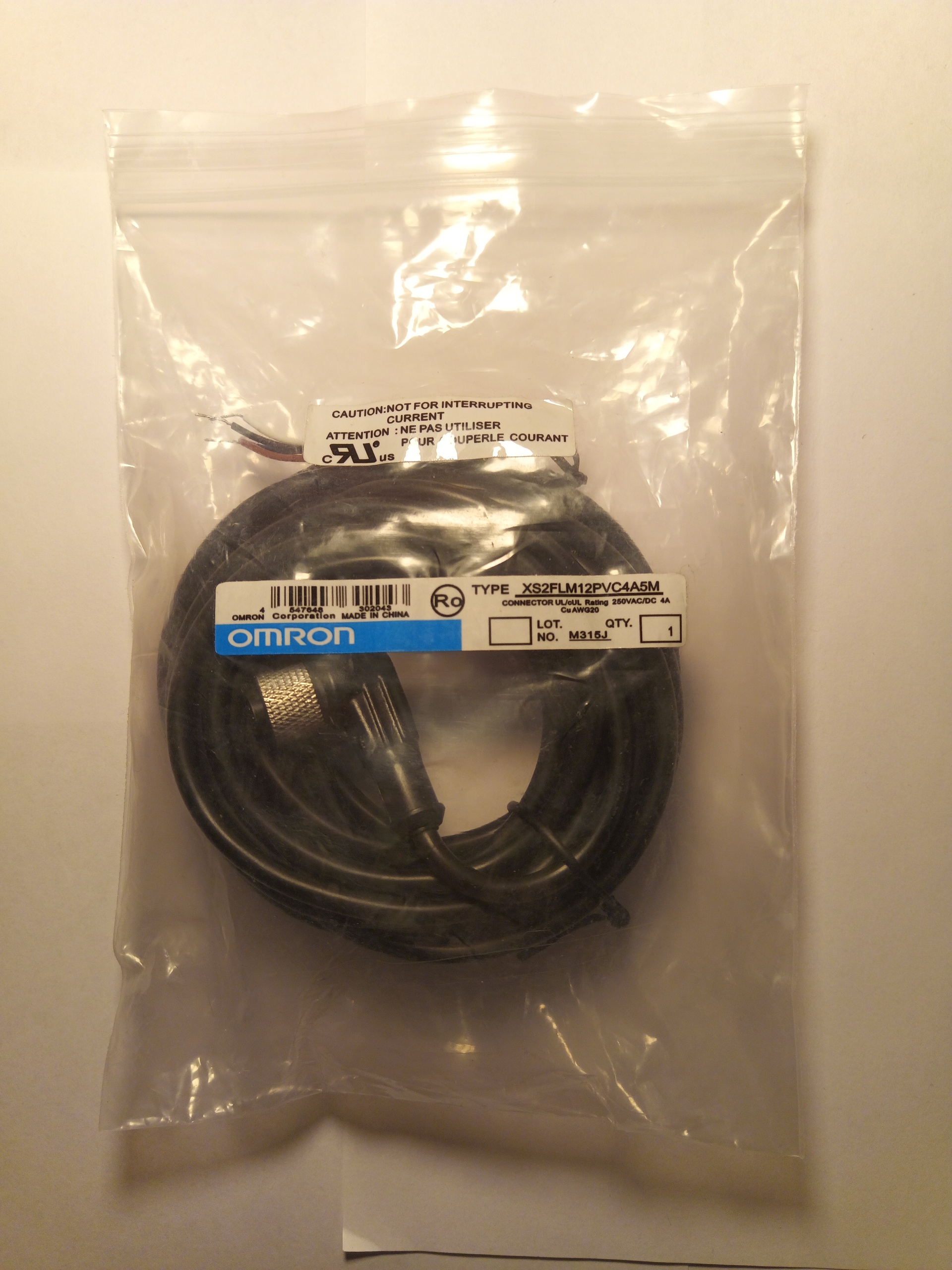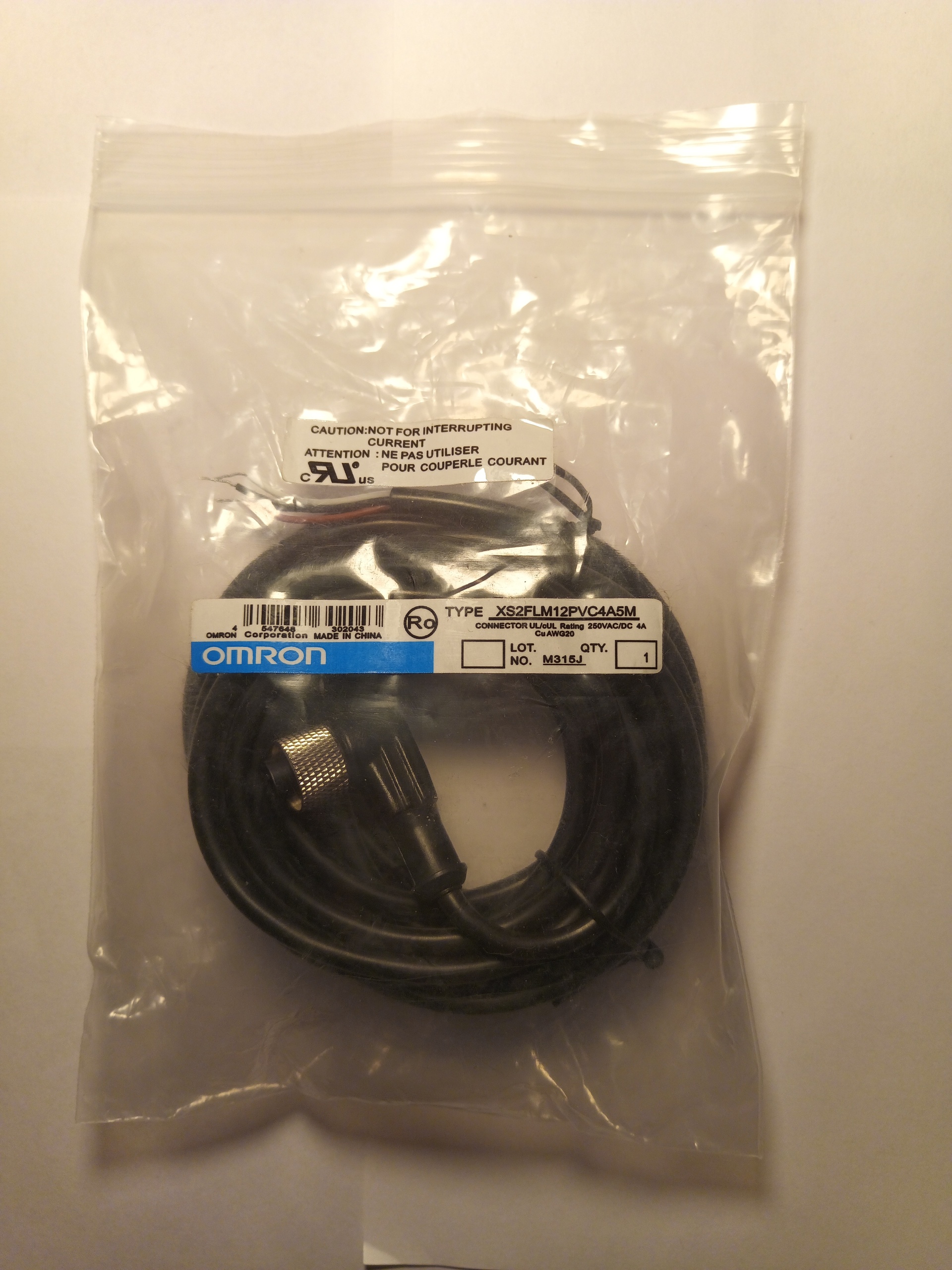 Кабель для датчиков с разъемом М12 Omron 5 метров.
