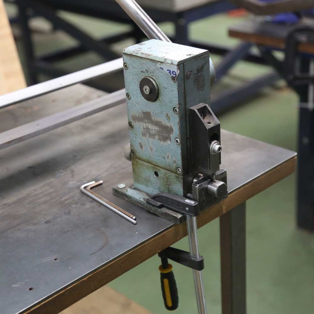 | 8 | Пресс для гибки линеек с набором насадок | Для догибания после биндера для крупных элементов |