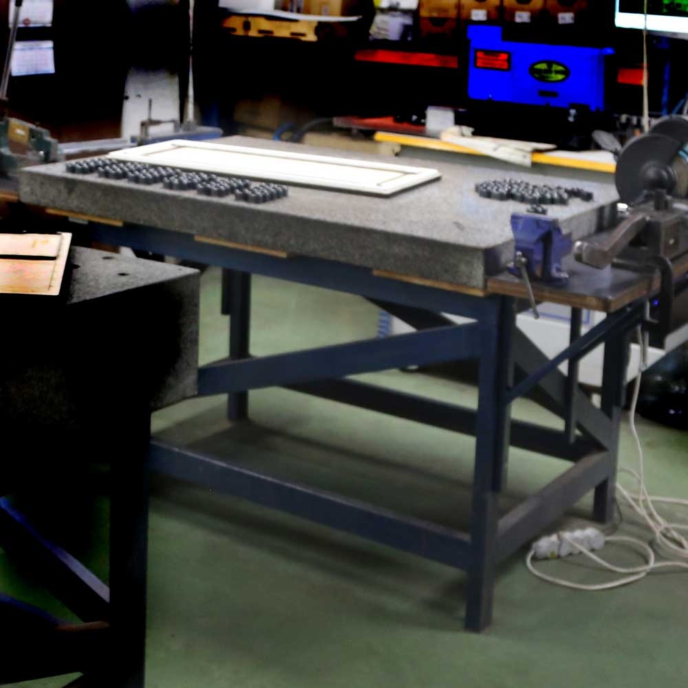 | 7 | Стол для сборки штанцформ 1500х1200 гранитный 1500 кг | Большая масса. Удобно забивать. На двух столах одинаковой высоты можно делать длинные штампы. |