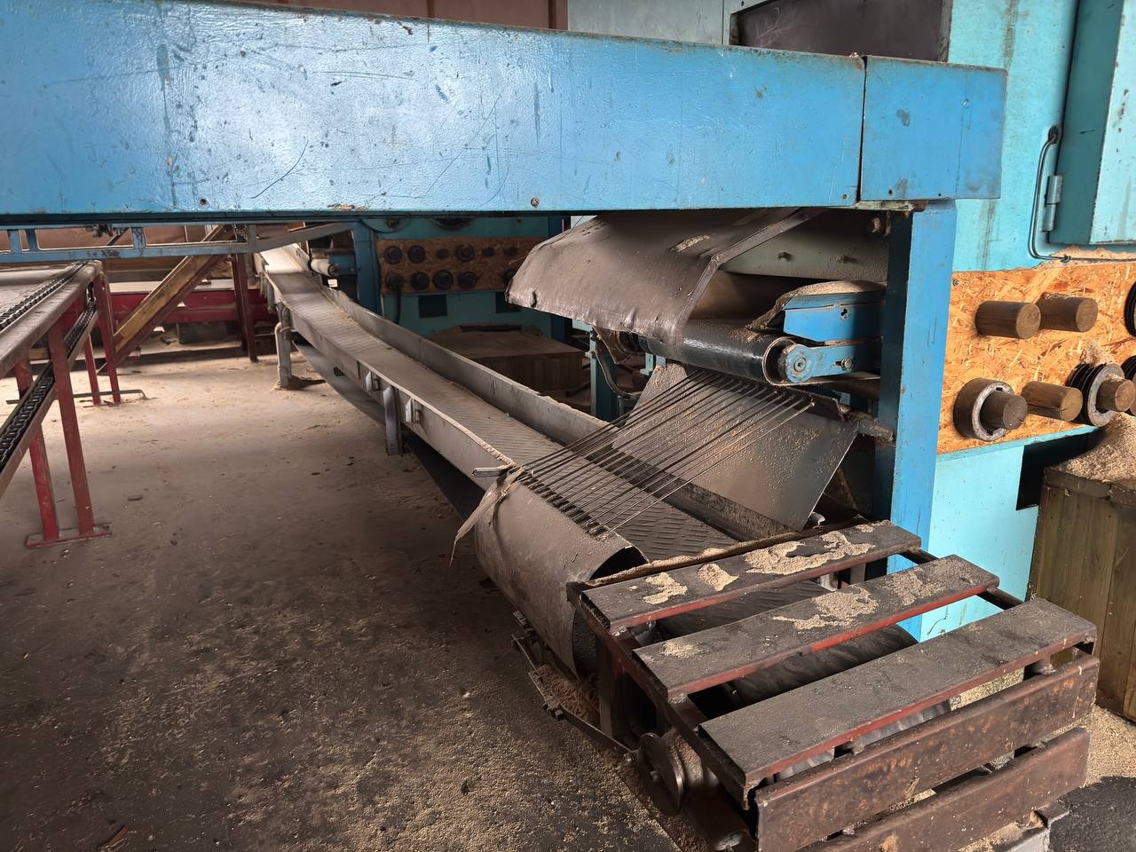 5. Продольный транспортер от брусовального станка с делителем полубруса и досок