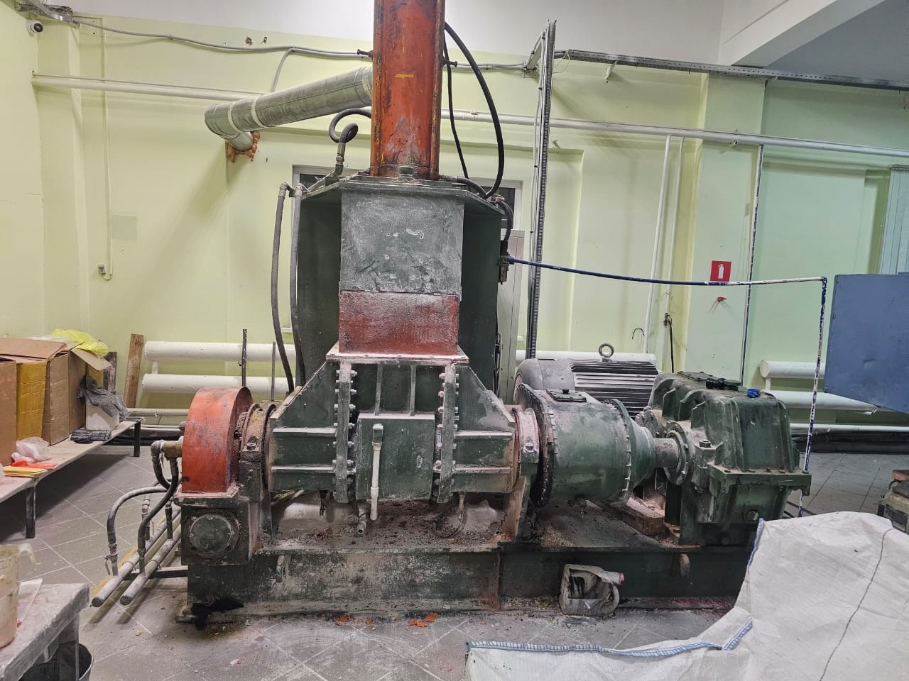 Резиносмеситель 90 литров для каучука. В рабочем состоянии подключен . Можно проверить в работе. К нему подключается вода для охлаждения и сжатый воздух.