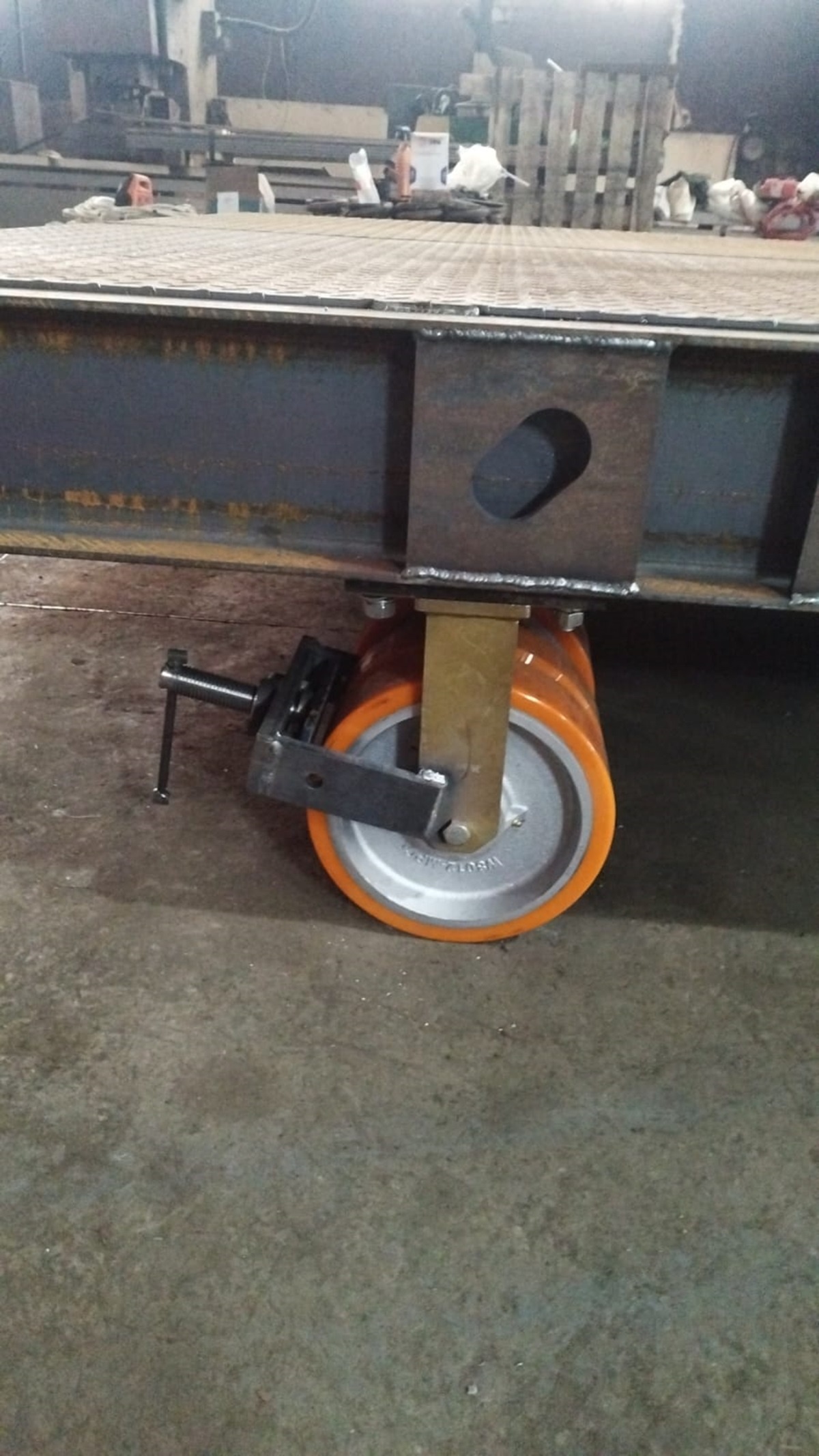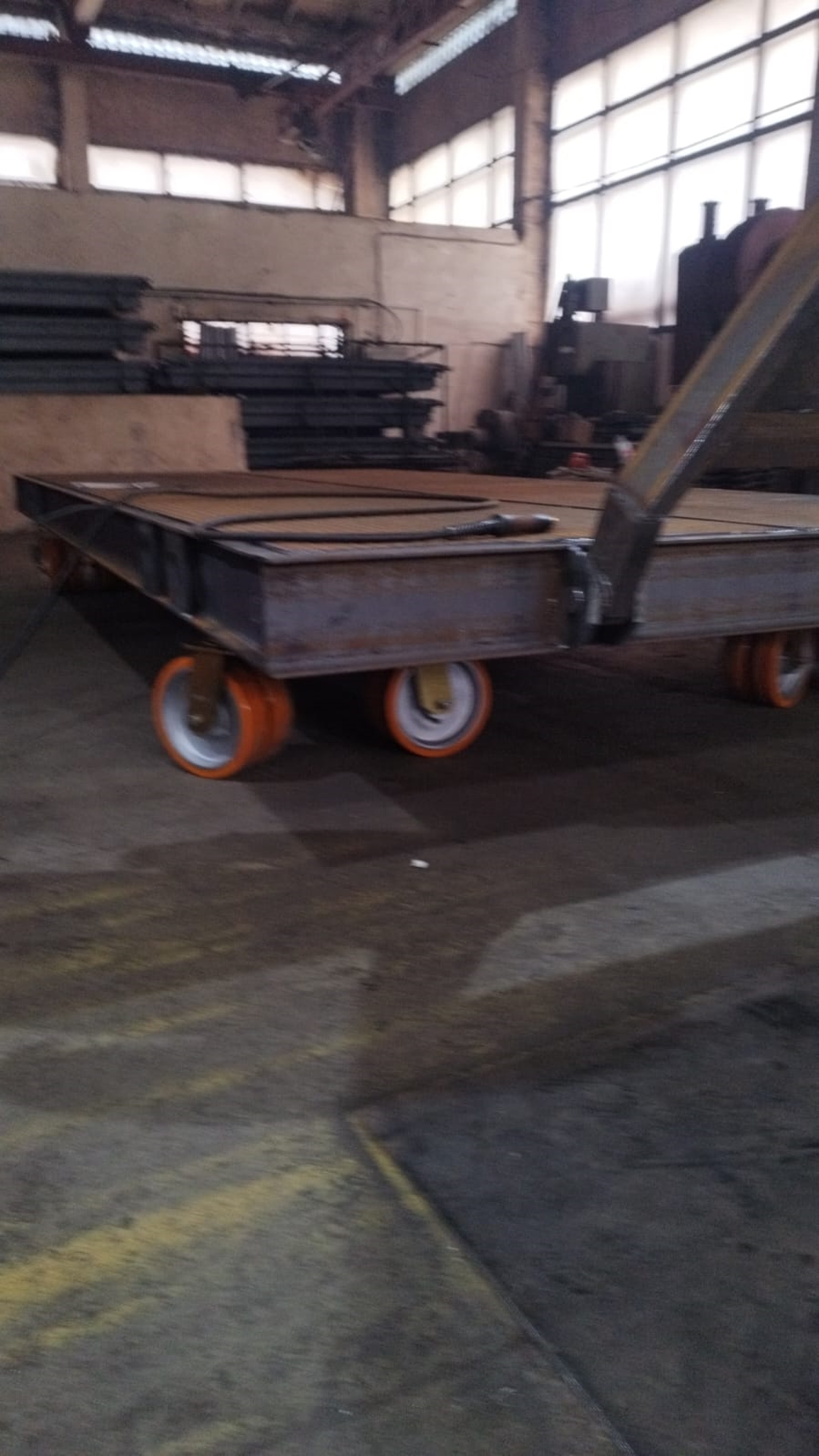 Внутрицеховые телеги изготавливаются с полиуретановыми и цельнолитыми резиновыми колесами, конфигурация и расположение колес тележек платформы моделируется с учетом равно распределённой нагрузки на грузовую платформу тележки.