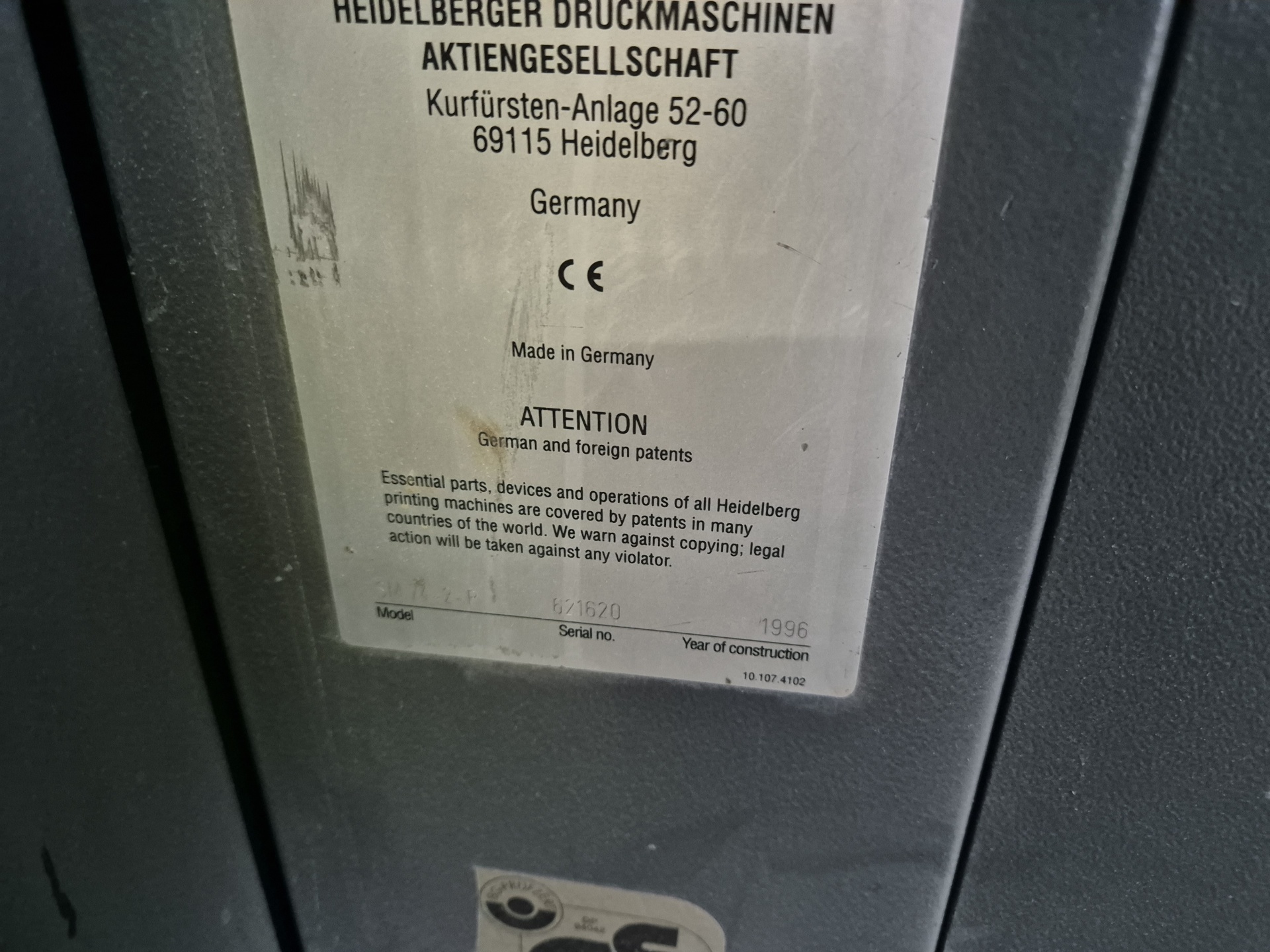 Состояние: Б/У Год выпуска: 1997 Производитель: Heidelberg (Германия)