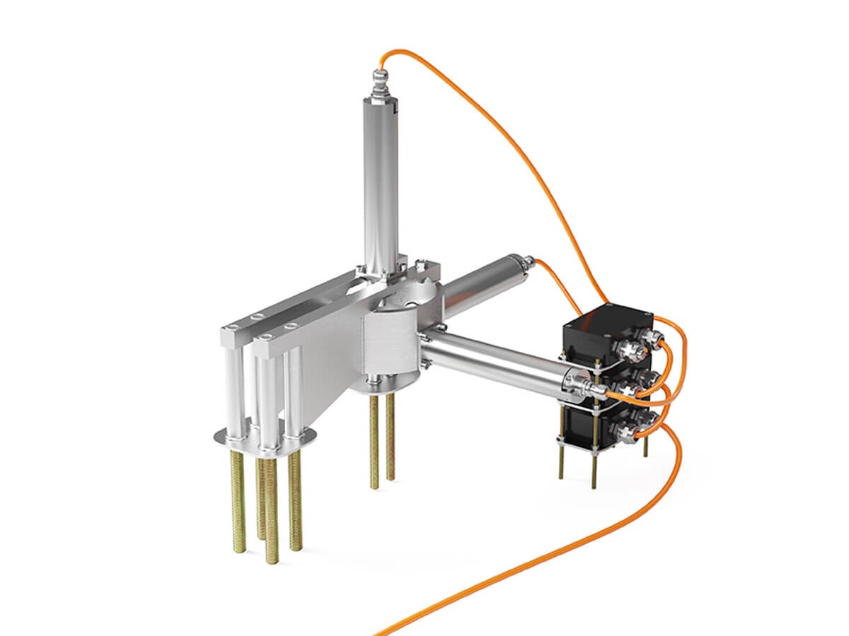 Измерения раскрытия трещин или деформационных швов производятся автоматически посредством трех датчиков перемещения CMG, подключаемых по цифровой линии RS-485 или технологии LoRaWAN.
