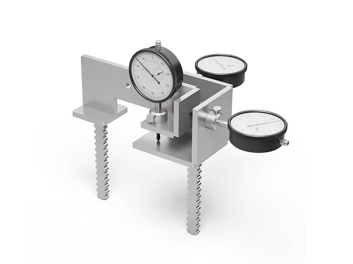 Трехосевой щелемер (трещиномер) ±25 мм механический представляет собой металлическую конструкцию, предназначенную для контроля раскрытия трещин или деформационных швов по трем направлениям с помощью ручных индикаторов часового типа.