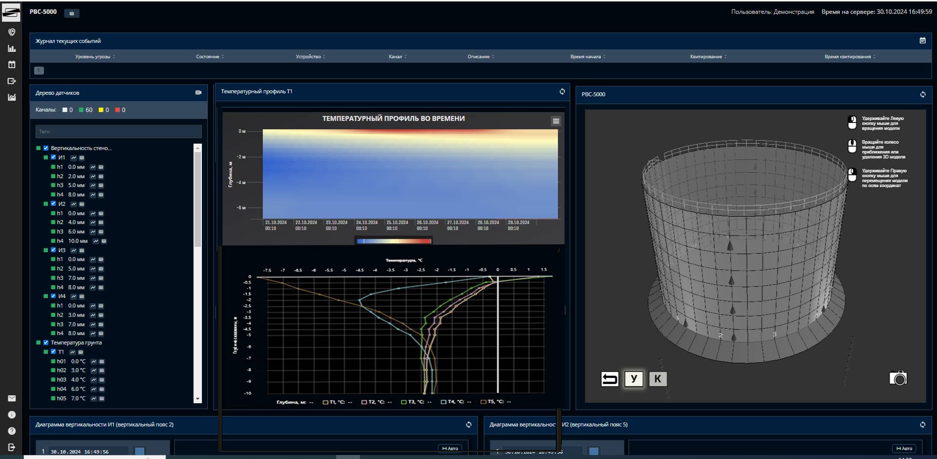 - 3D-визуализация объекта мониторинга и установленных на них датчиков -хранение отчетов и других материалов о техническом состоянии