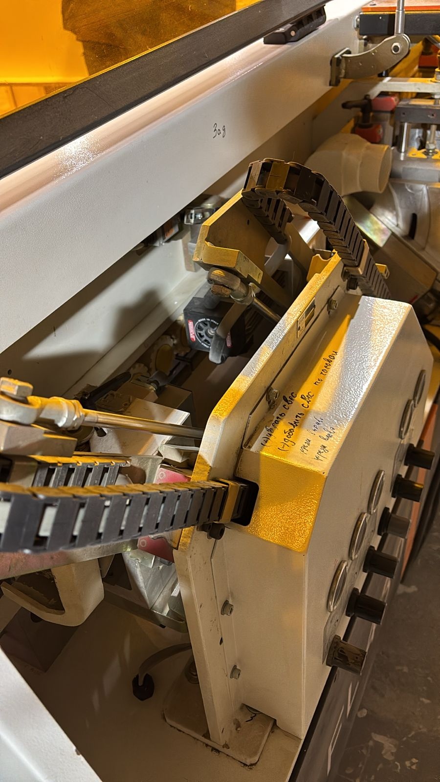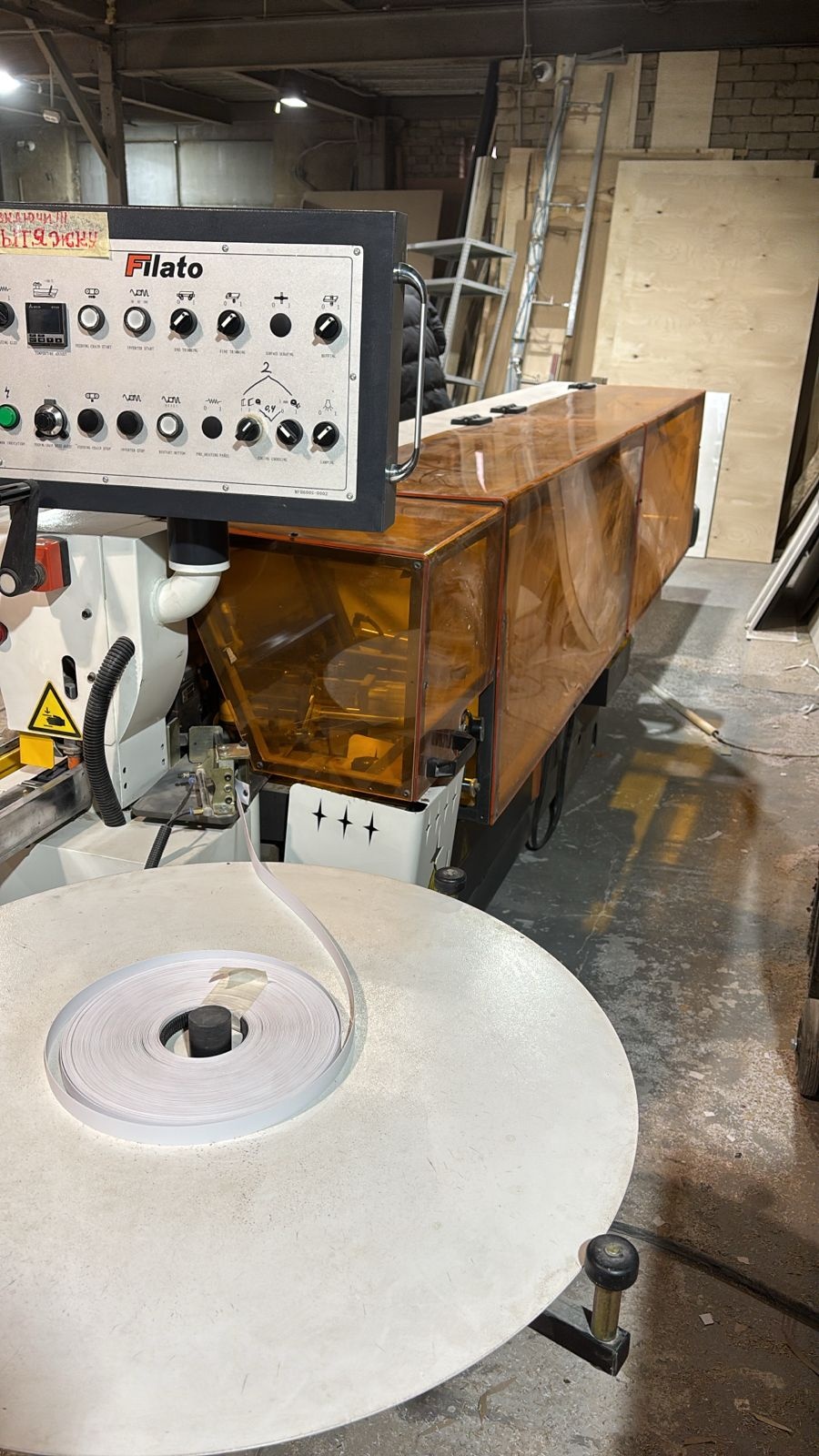 Станок в отличном состоянии. В основном времени станок использовался для кромления изделий, от сюда следует его состояние на фото. Соответственно ролики, башмаки, все узлы повторюсь в отличном состоянии. В наличии запасной комплект фрез и полировальных кругов! В комплекте пылесос и компрессор. Станок 2015 года даст фору любым средним станкам китайских производителей, включая Filato 385. Кто разбирается в станках понимает составную цену. Возможна скидка!