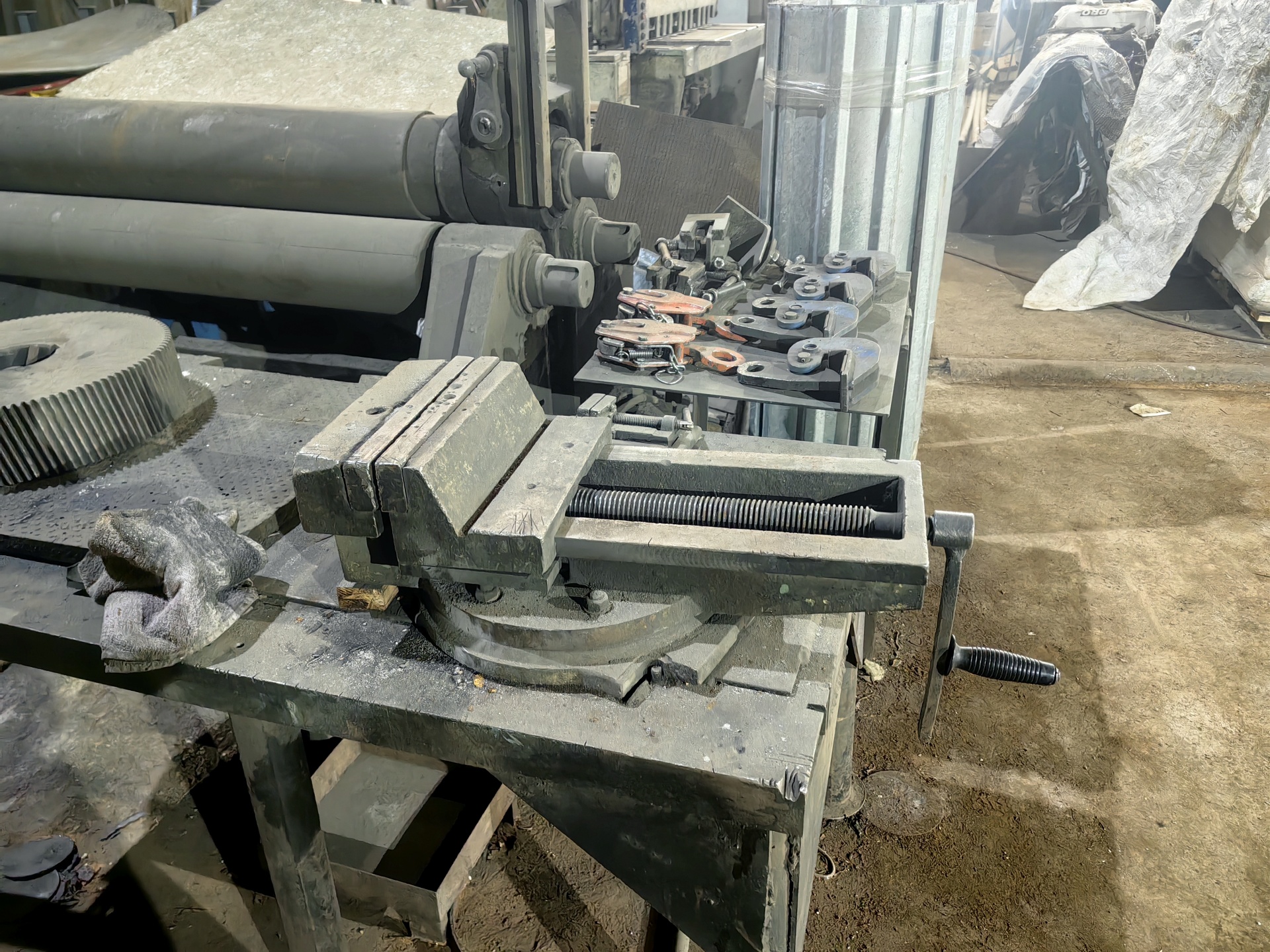 Есть верстаки,болгарки,моторы,остатки метала,тиски итд.