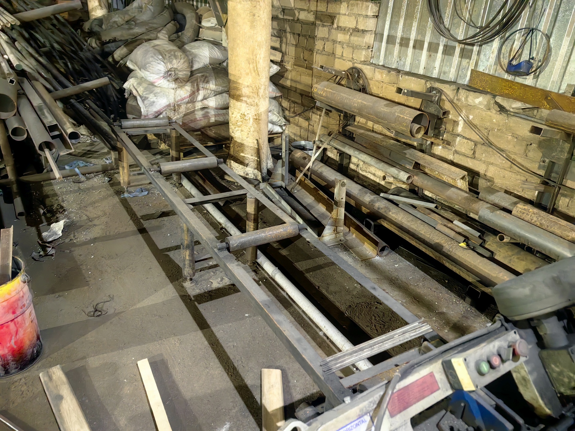 Есть верстаки,болгарки,моторы,остатки метала,тиски итд.
