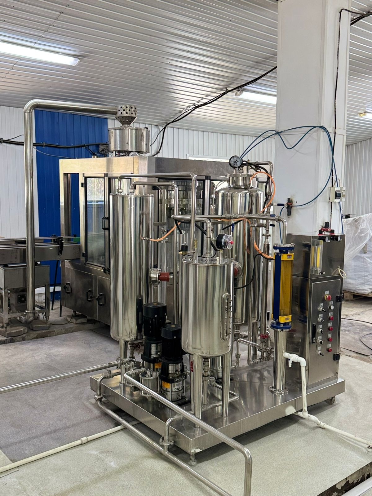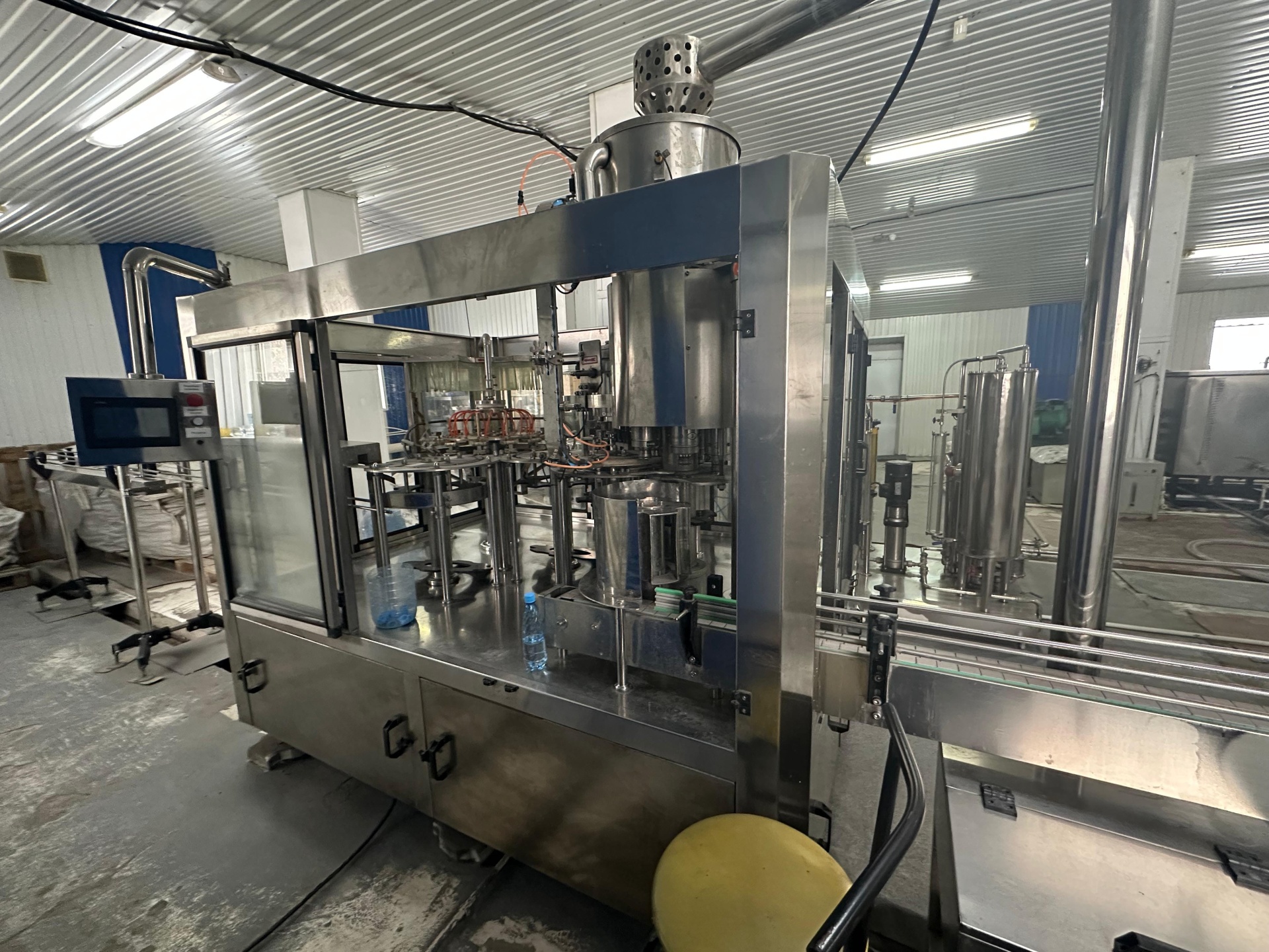 Продается действующая линия с полным автоматическим циклом по водоподготовки, розливу, маркировке и упаковке бутилированной питьевой воды/напитков до 2000 бутылок в час.