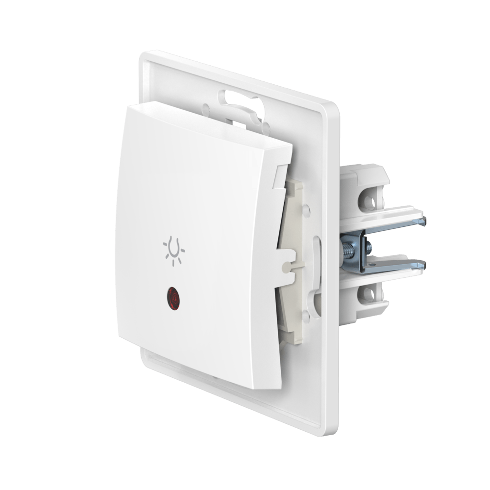 Механизм встраиваемого кнопочного выключателя CADUCEUS ALING PRESTIGE с символом «Свет», с индикацией, 10АХ, 250В~ - Продам в Дубне