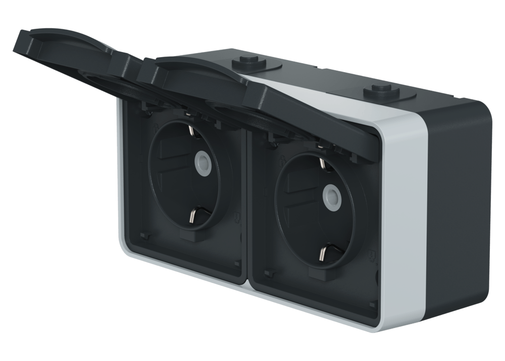 Розетка электрическая двухместная горизонтальная CADUCEUS ALING PROTECTA для открытой проводки, без шторок, с крышкой, 16А, 250В~ - Продам в Дубне