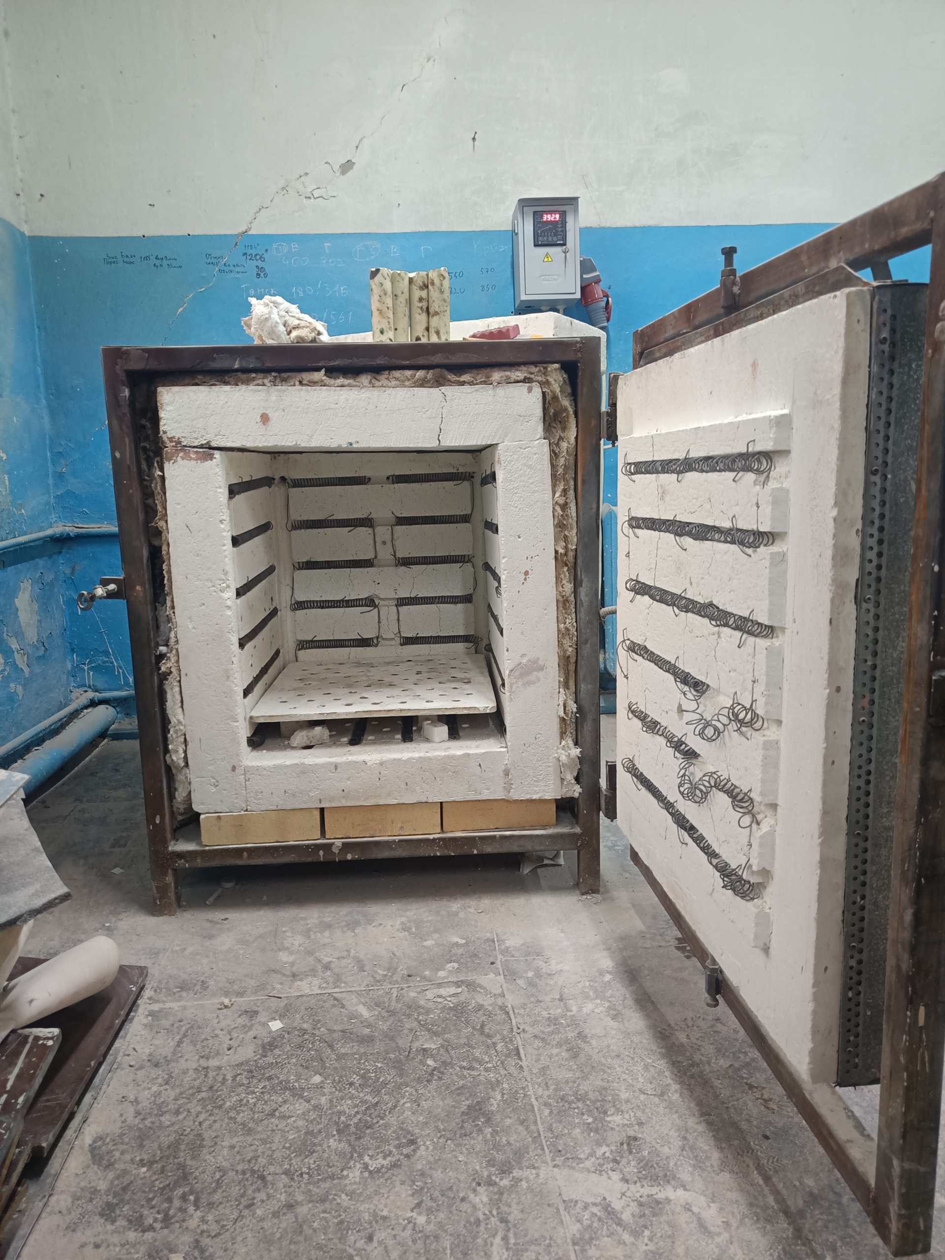 всего печей 4, накрутку спиралей тоже скину. Спирали намотаны так, чтобы равномерно обжигать посуду при градусах 1220. Посуда обжигалась каждый день. Спирали меняли 3 месяца назад. при каждодневной работе, всё менялось раз в год. Термопары новые стоят