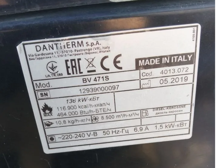 Продается мощная промышленная дизельная тепловая пушка Master BV 471.
