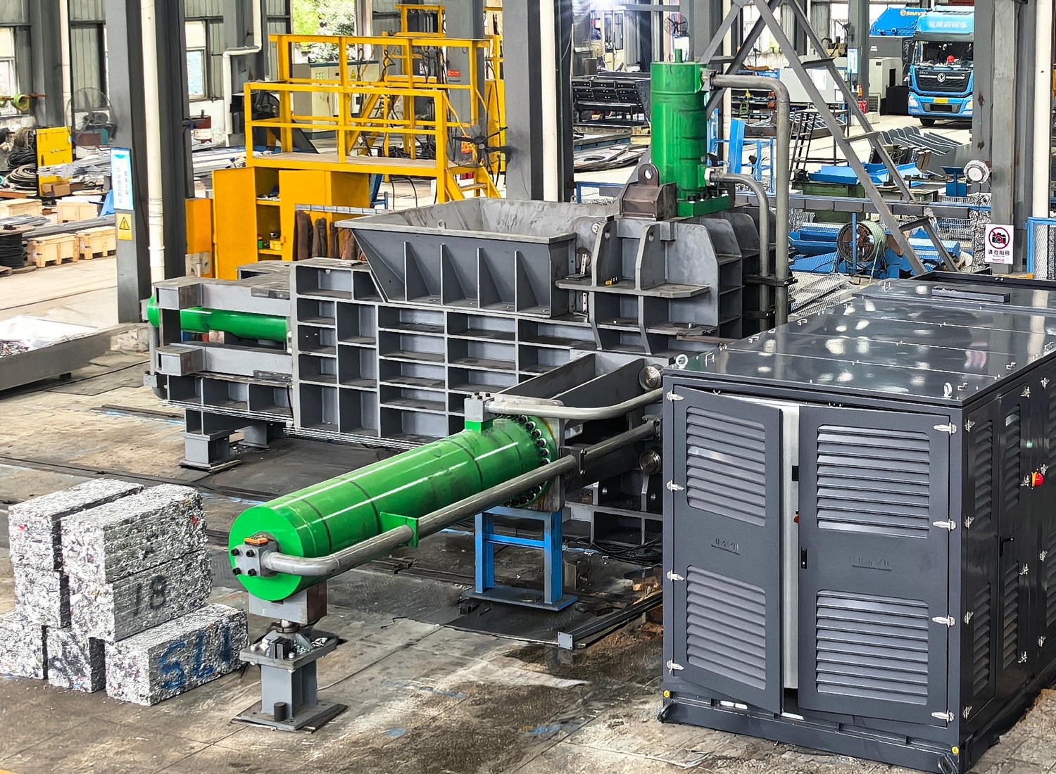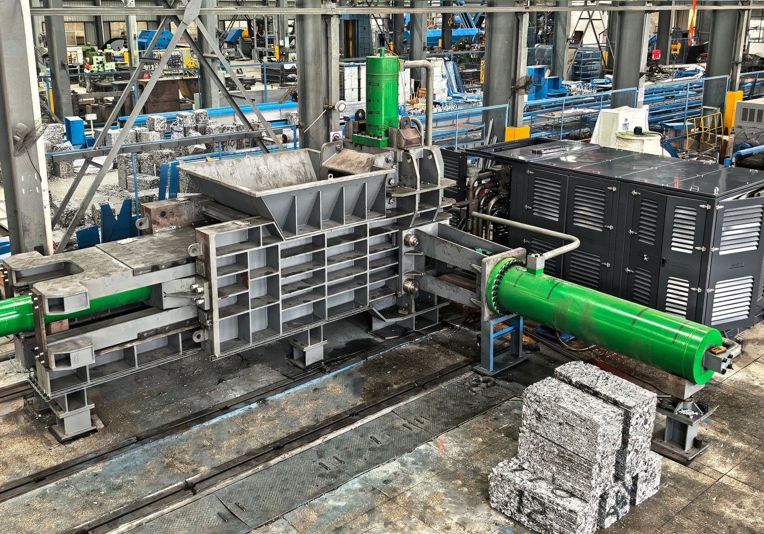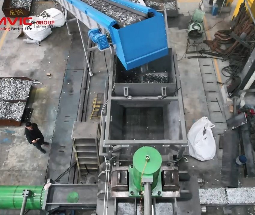 подходит для прессование измельчённого лома алюминия, который по прямому конвейеру непрерывно засыпается