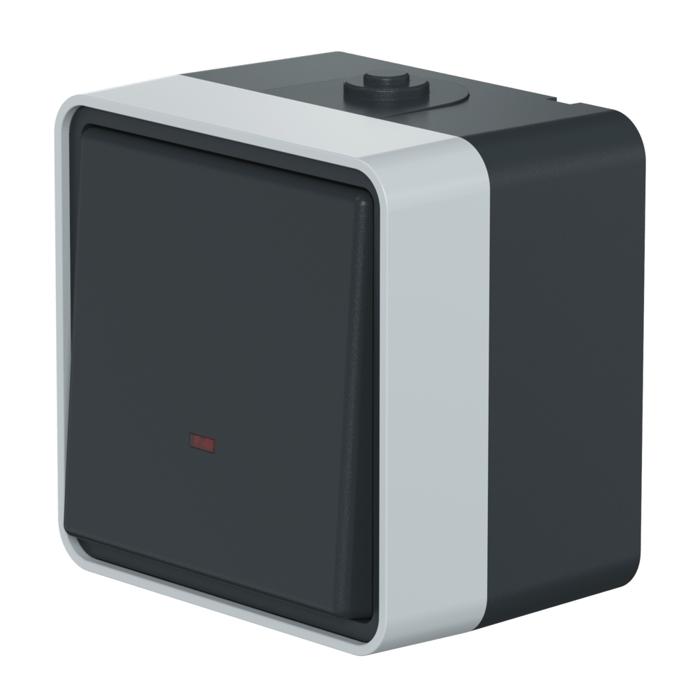 Выключатель одноклавишный CADUCEUS ALING PROTECTA, перекрестный, для открытой проводки, с индикацией, 10АХ, 250В~