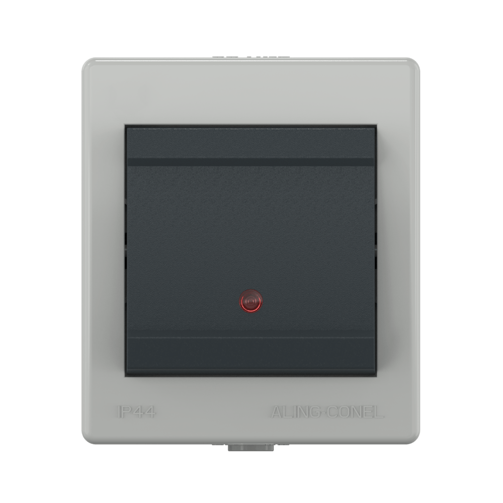 Выключатель одноклавишный CADUCEUS ALING PROTECTA, проходной, для открытой проводки, с индикацией, 10АХ, 250В~