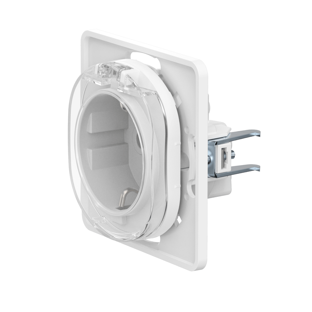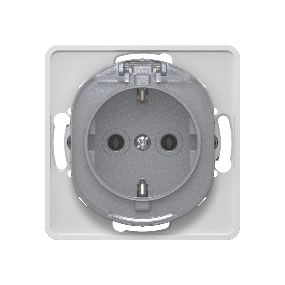 Механизм розетки скрытой установки CADUCEUS ALING PRESTIGE с заземлением, без шторок, с крышкой с пластиковым основанием, 16А, 250В~