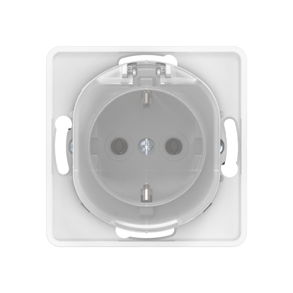 Механизм розетки скрытой установки CADUCEUS ALING EON с заземлением, без шторок, с крышкой, с керамическим основанием, 16А, 250В~