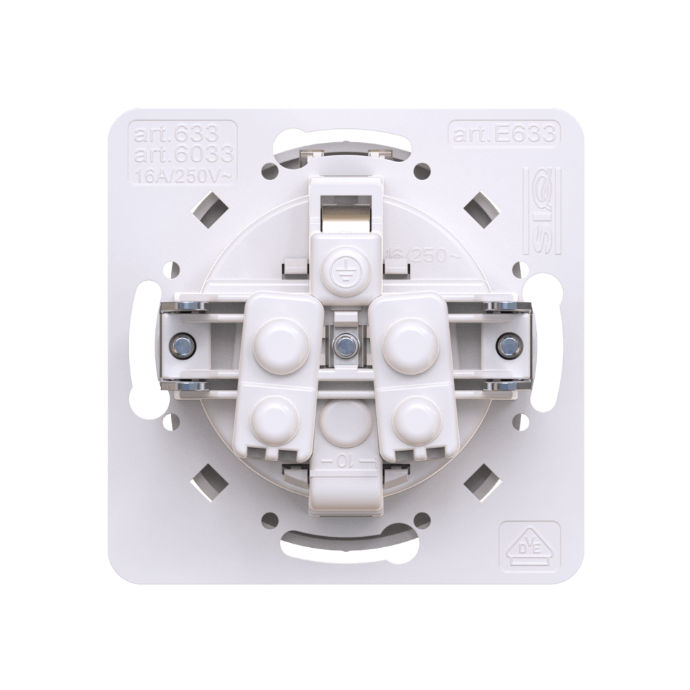 Механизм розетки скрытой установки CADUCEUS ALING EON с заземлением, без шторок, с керамическим основанием, 16А, 250В~