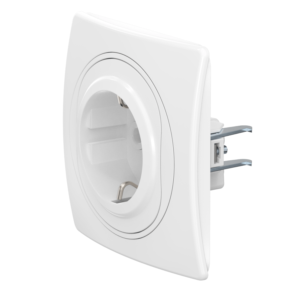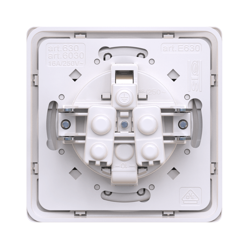 Механизм розетки скрытой установки CADUCEUS ALING EON с заземлением, без шторок, с крышкой, с пластиковым основанием, 16А, 250В~