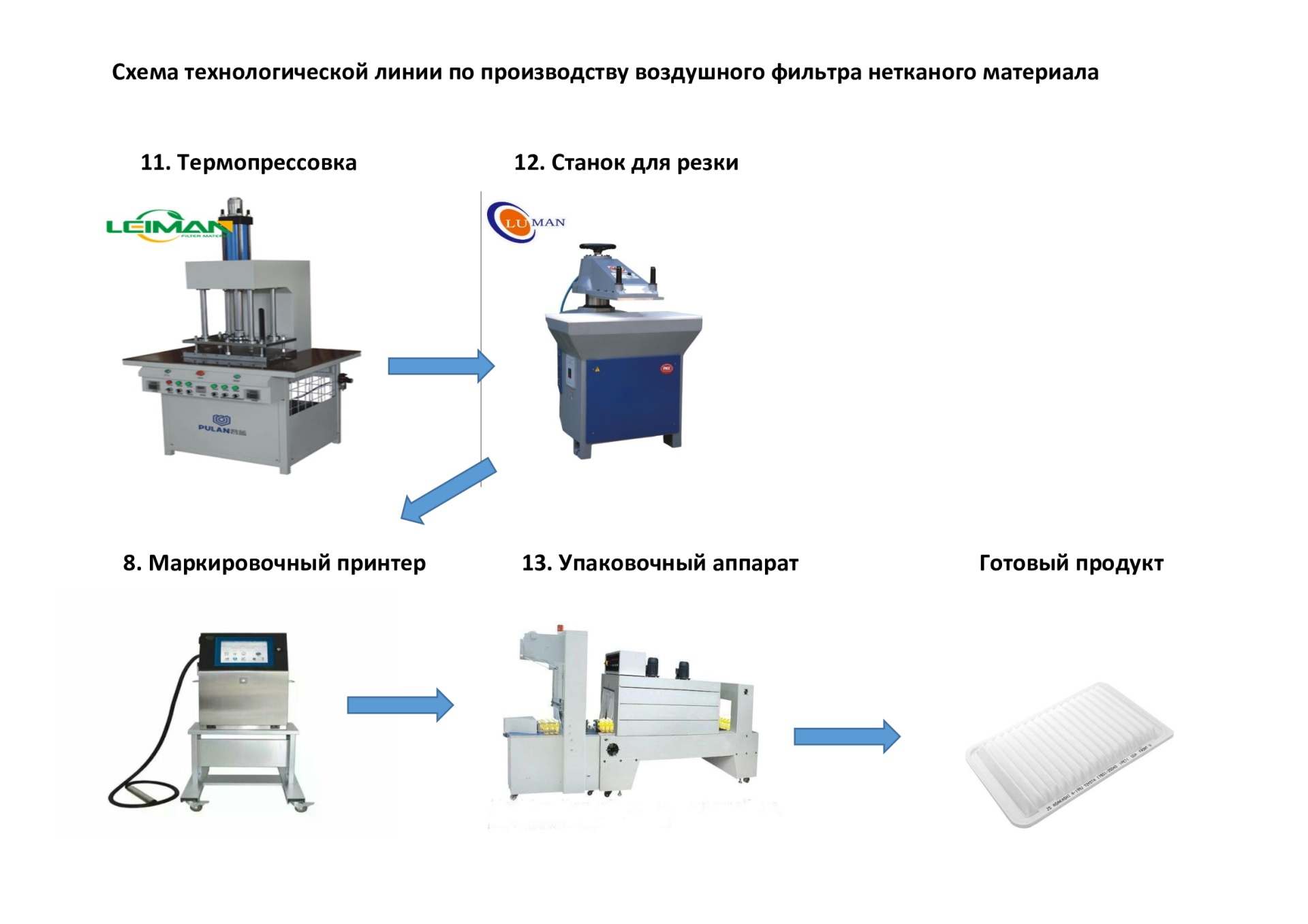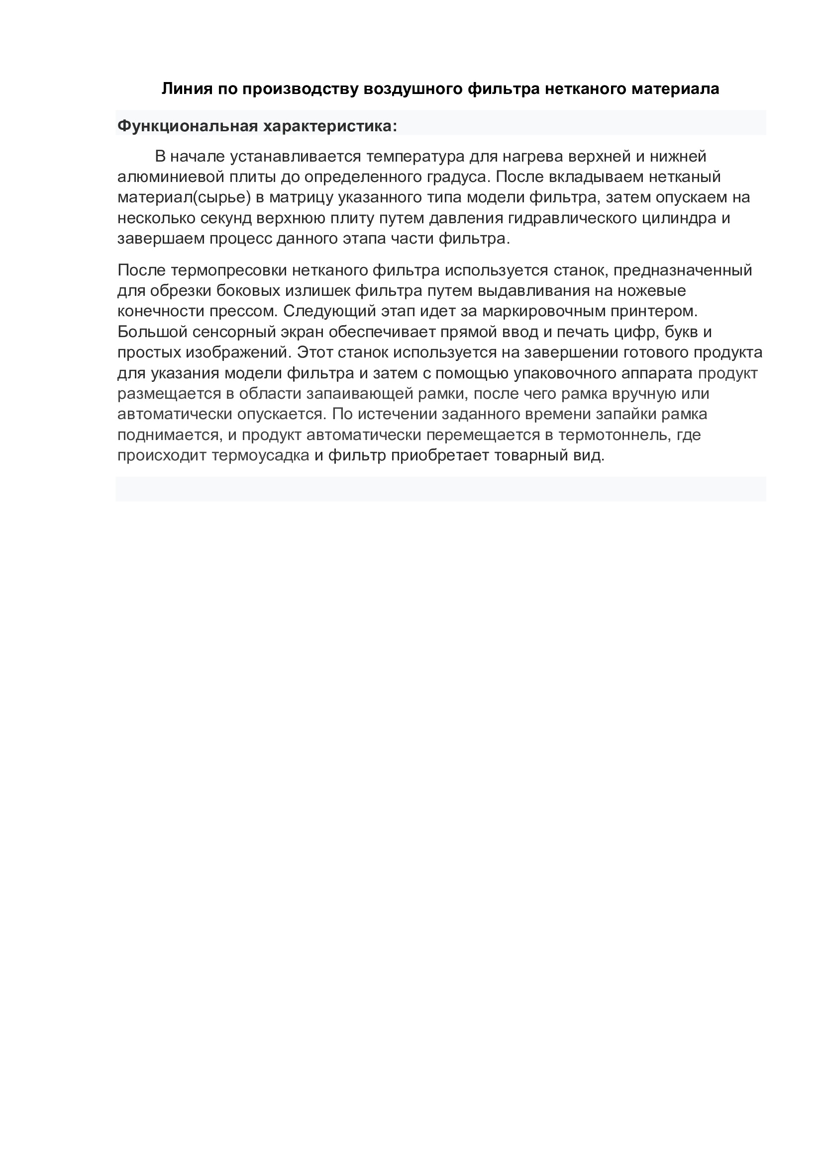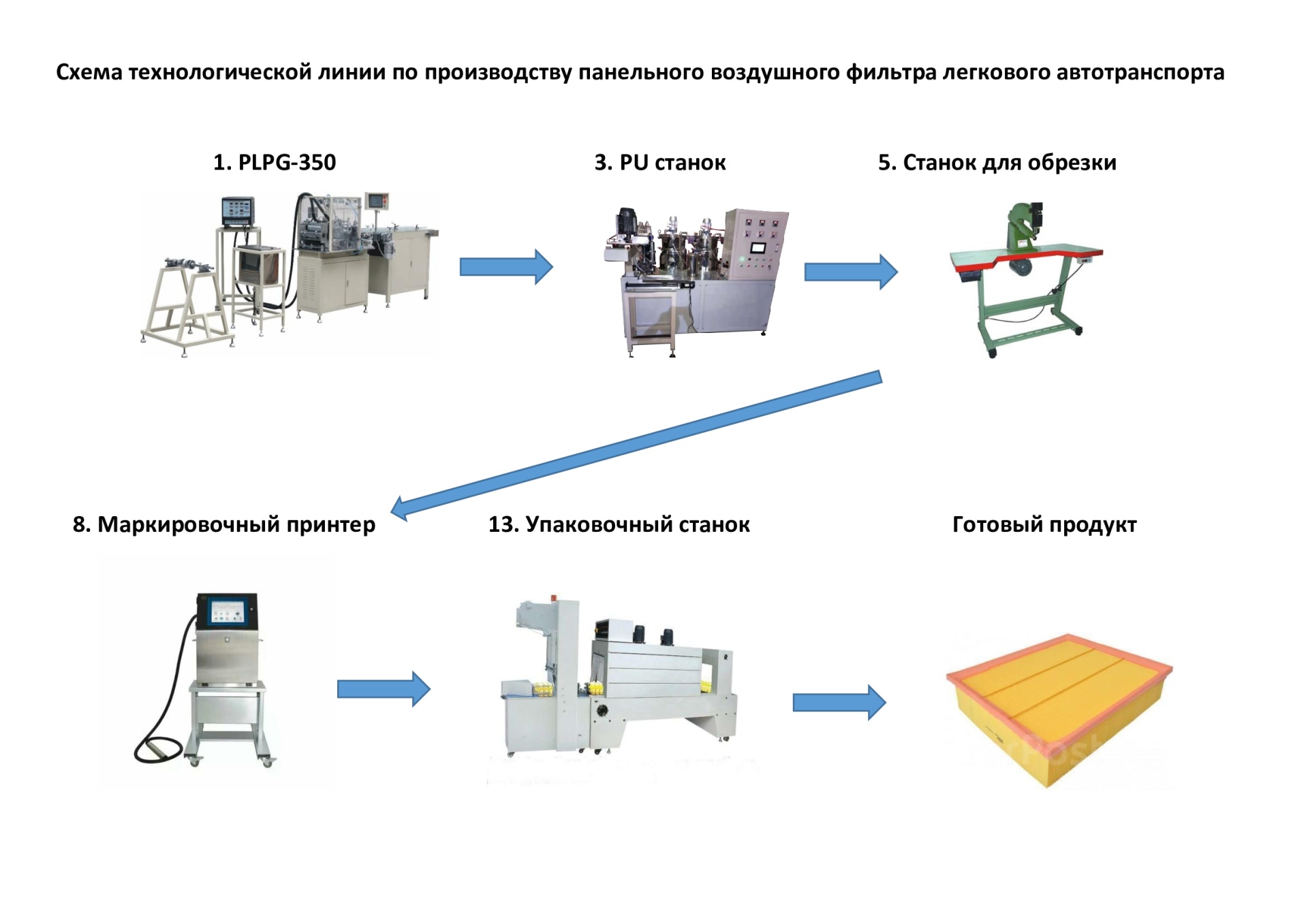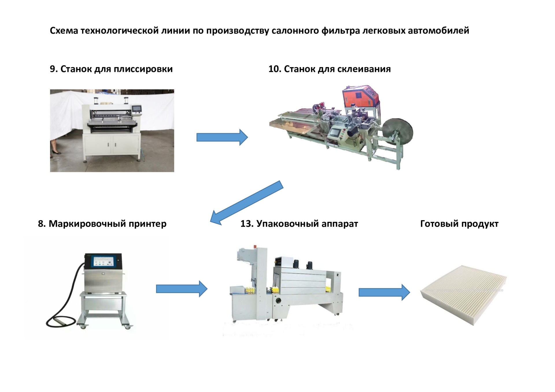 Предлагается полностью рабочая линия оборудования 2019 года для производства воздушных и салонных фильтров для легковых и грузовых автомобилей.