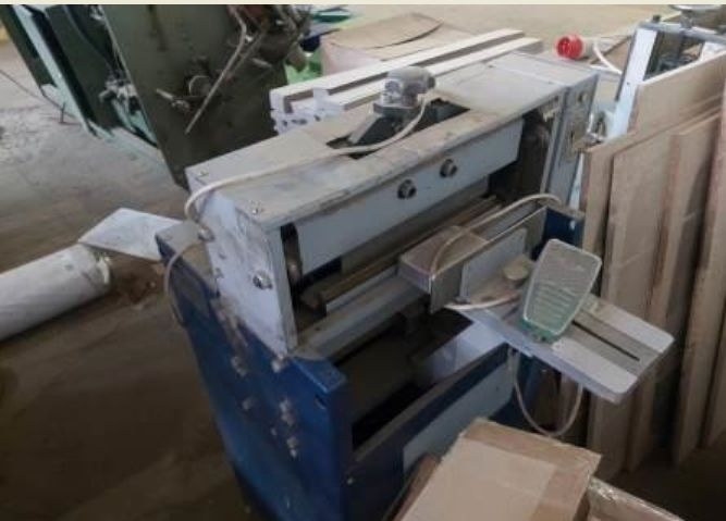 Книга укладывается на рабочий столик, ровняется оператором по передним обрезам переплётной крышки, нажатием педали включается привод, после чего рабочее движение ножей, штриховка с заданной продолжительностью и возврат ножей в исходное положение осуществляются автоматически