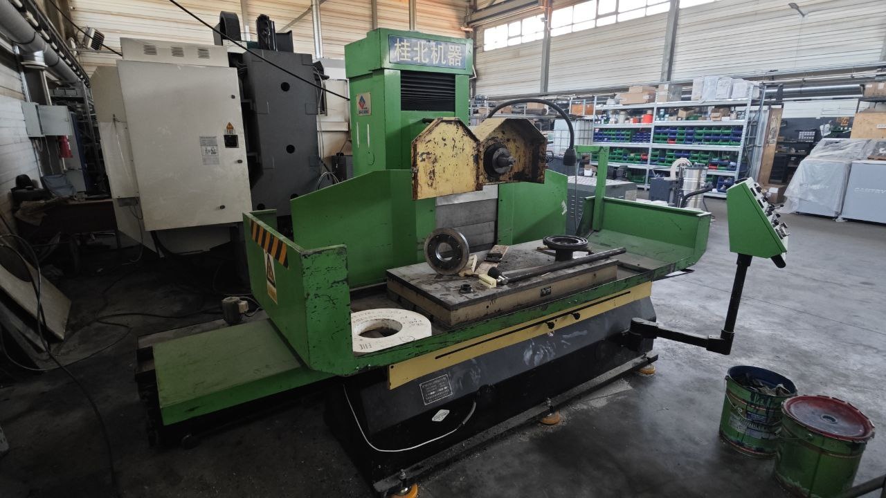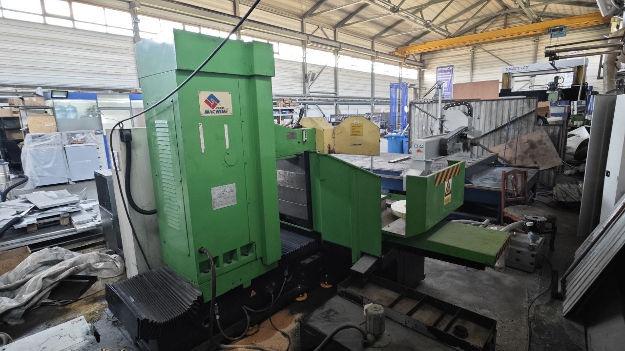 Cтол 1250х630, диаметр круга 450 мм, ширина 50 мм, мощность шпинделя 5,5 кВт, ход продольный 1300 мм, поперечный 650, вертикальный 600, продольная подача за счет гидроцилиндра,вертикальная и поперечная за счет сервоприводов, индикация координат на панели