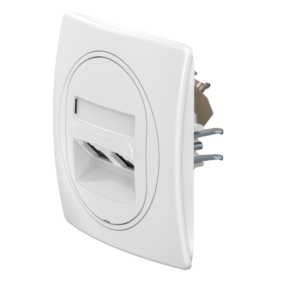 Встраиваемая двойная компьютерная розетка CADUCEUS ALING EON с модулями Keystone RJ45 8P8C cat.6 FTP, механизм