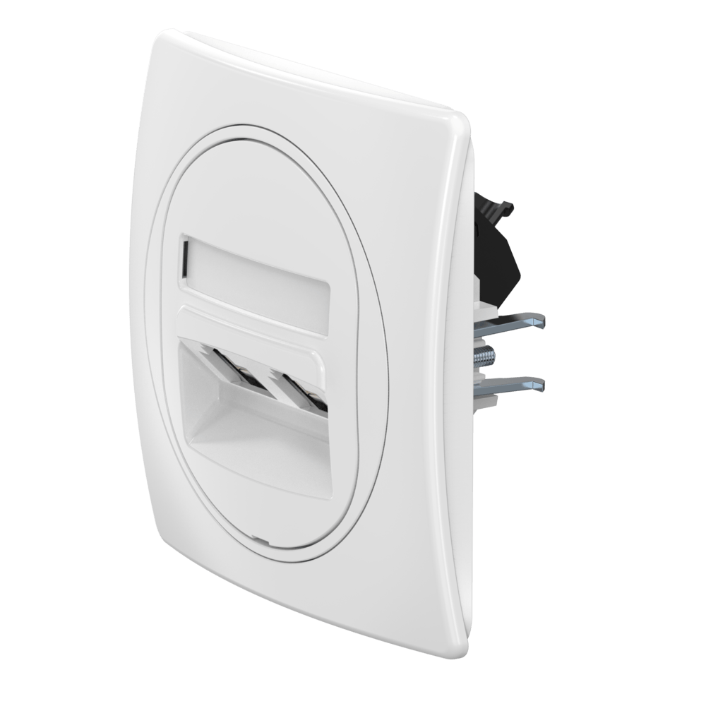 Встраиваемая двойная компьютерная розетка CADUCEUS ALING EON с модулями Keystone RJ45 8P8C, cat.5e, UTP, механизм