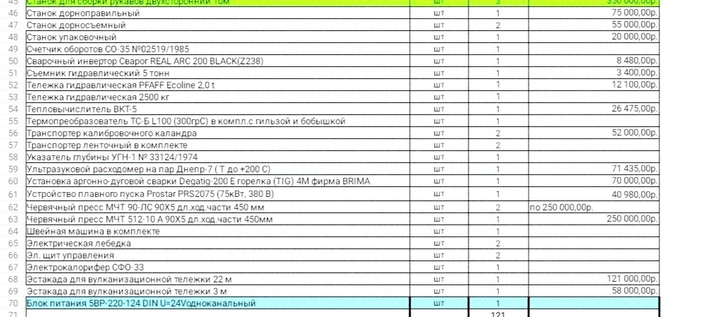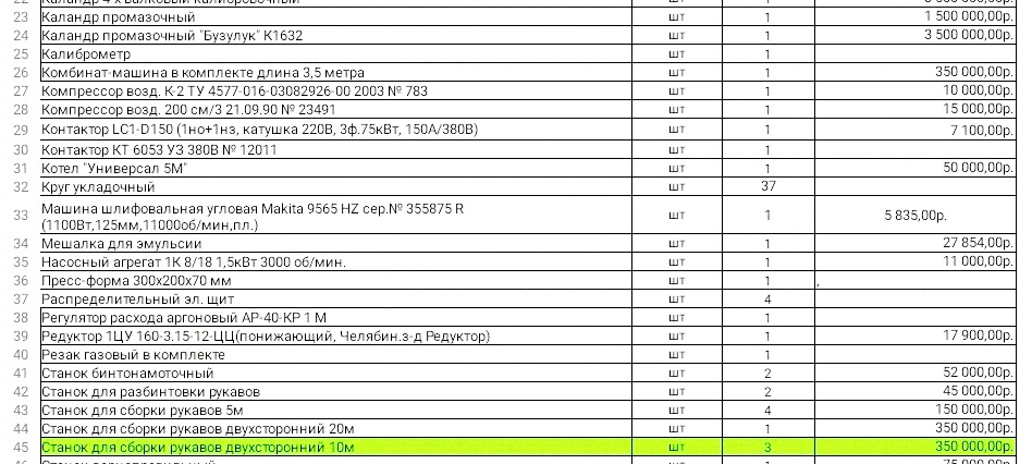 Цена оборудования 18 млн.