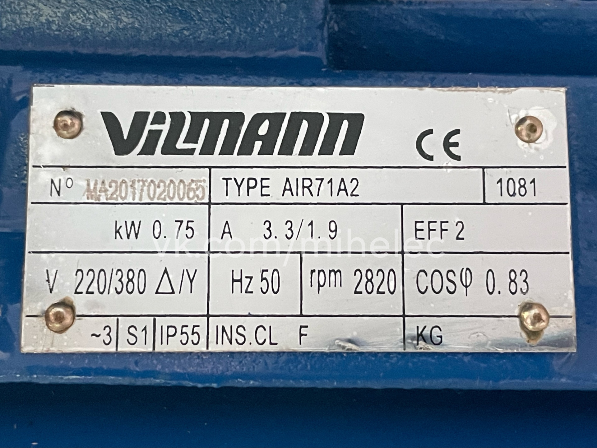 Электродвигатель Vilmann, тип АИР71А2, 0.75 кВт, 2820 об/мин (0,75квт 3000 оборотов в минуту) лапы AIR71A2 - Продам в Москве