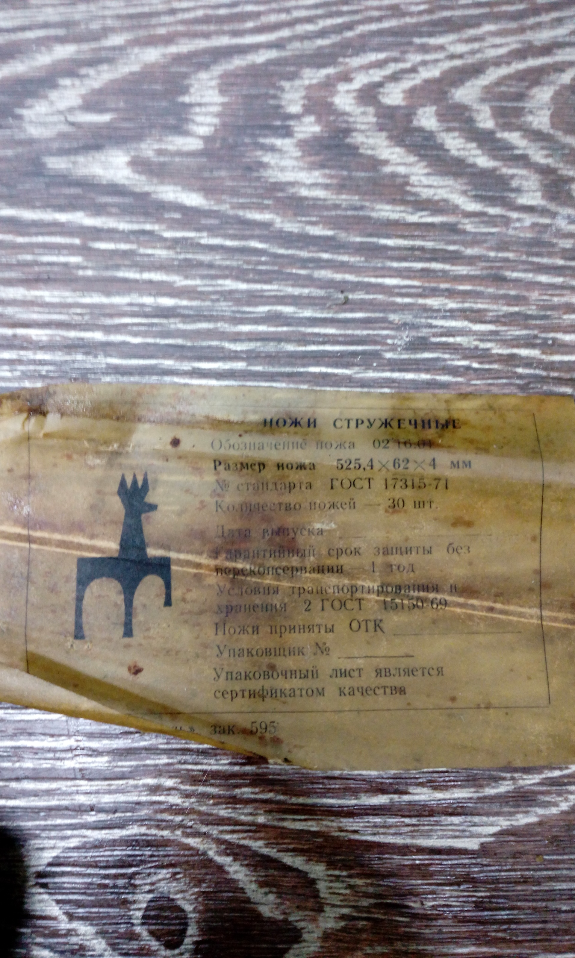 Ножи стружечные в консервационной смазке, сталь 8х6НФТ 57HRC с заводской рихтовкой для производства древесной стружки, идущей на изготовления древесно- стружечной плиты (ДСП), специальная инструментальная сталь предназначенная для изготовления инструмента работающего на высоких оборотах,с качественными характеристиками. изготовитель Горьковский завод размеры 525,4х62х4мм. Возможна расконсервация-заточка эльборовыми шлифовальными кругами с охлаждением в размер , доводка, последующая консервация с упаковкой в парафинированную бумагу. 400шт