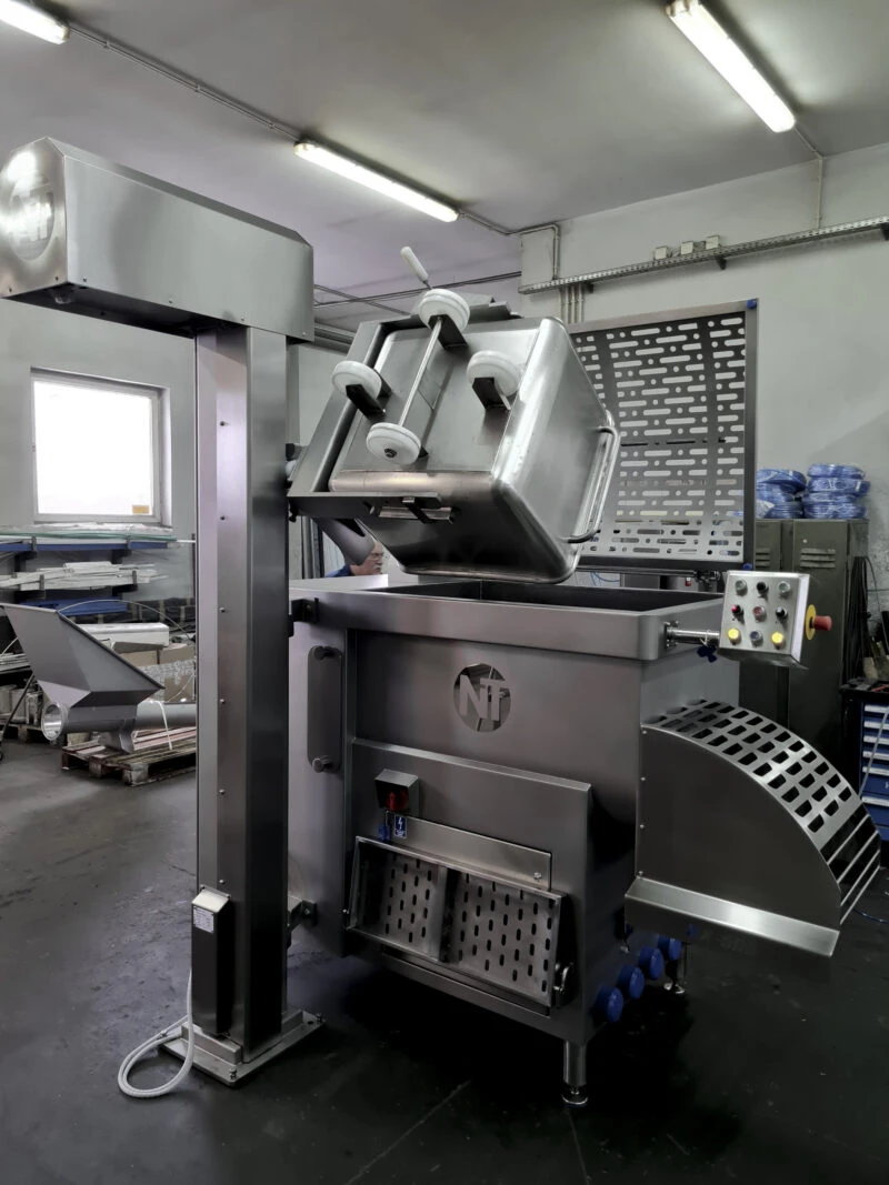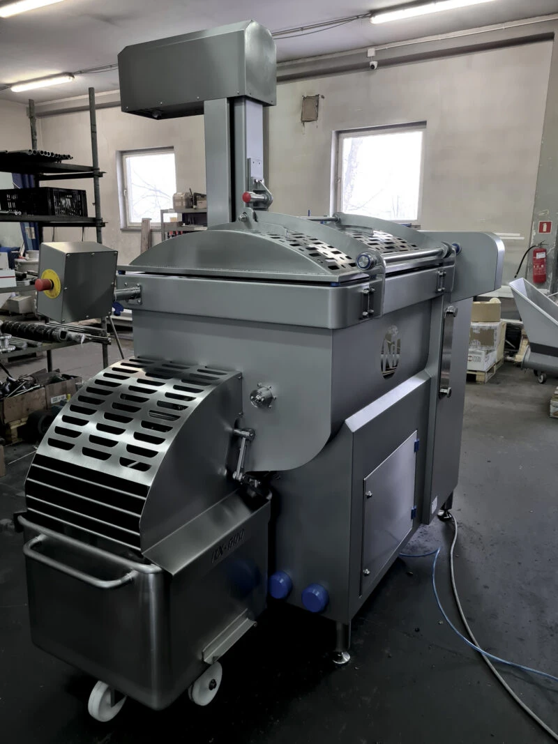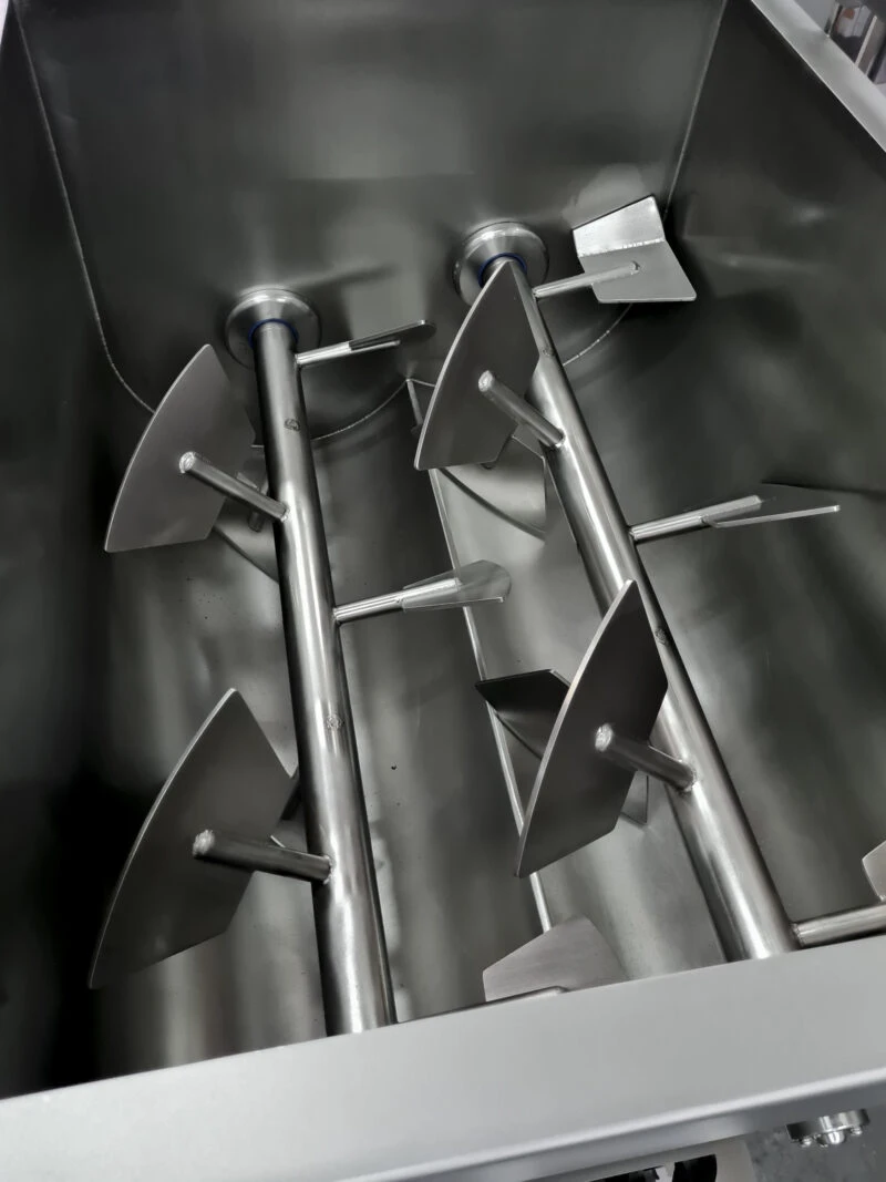 Фаршемешалка лопастная типа RX-600 предназначена для быстрого и точного смешивания фарша при продукции колбасных изделий на мясокомбинате. Устройство использует двойную систему смесительных лопастей которые позволяют точно и равномерно смешивать все ингредиенты фарша. Устройство имеет переменные стороны оборотов мешалок, как и переменную скорость смешивания. Изготовлен полностью из нержавеющей стали.